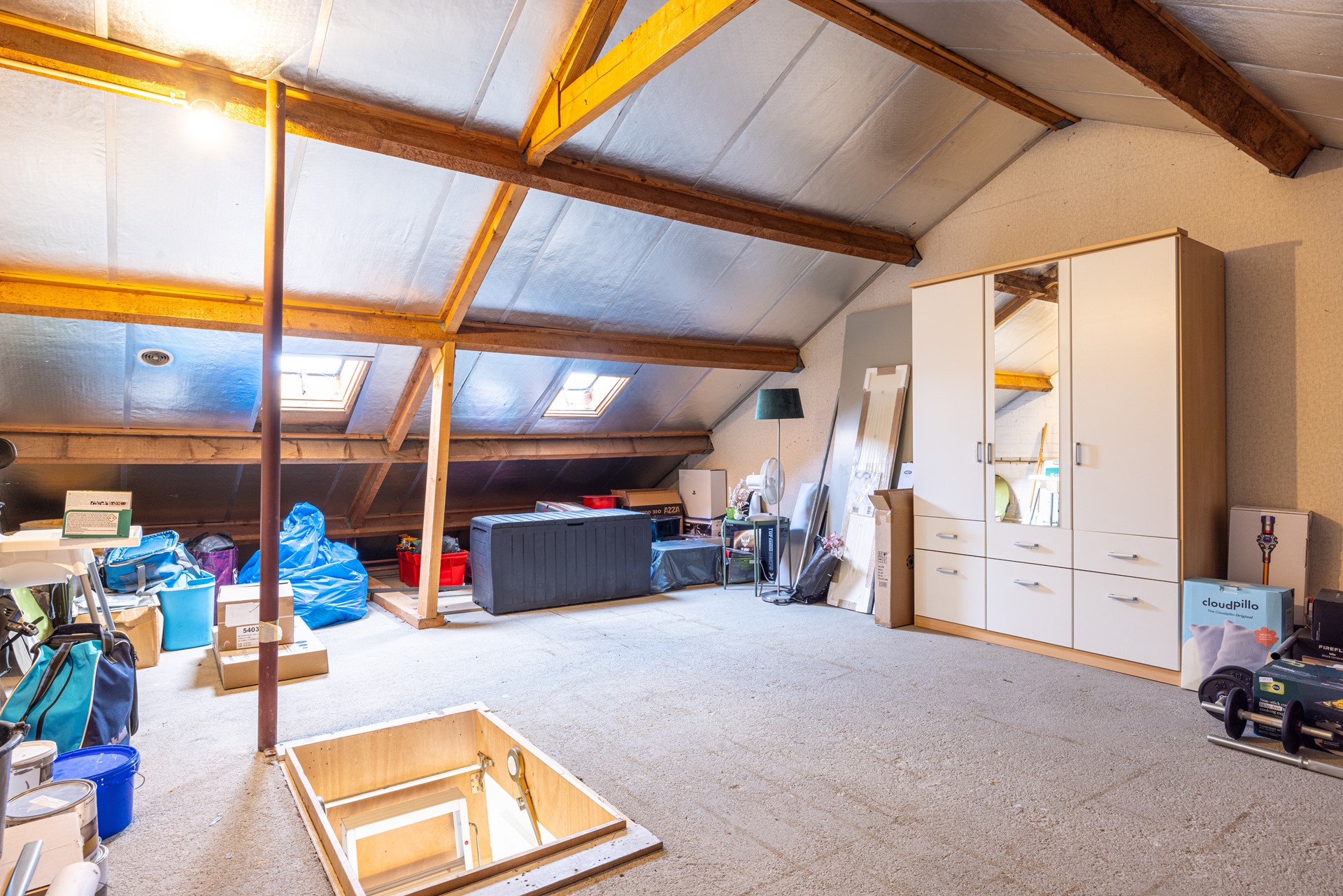 De tweede verdieping is bereikbaar via een vlizotrap. Hier bevindt zich een zeer ruime zolder met opstelling van de cv-ketel. Een ideale plek voor extra opslagruimte of om naar wens verder af te werken.