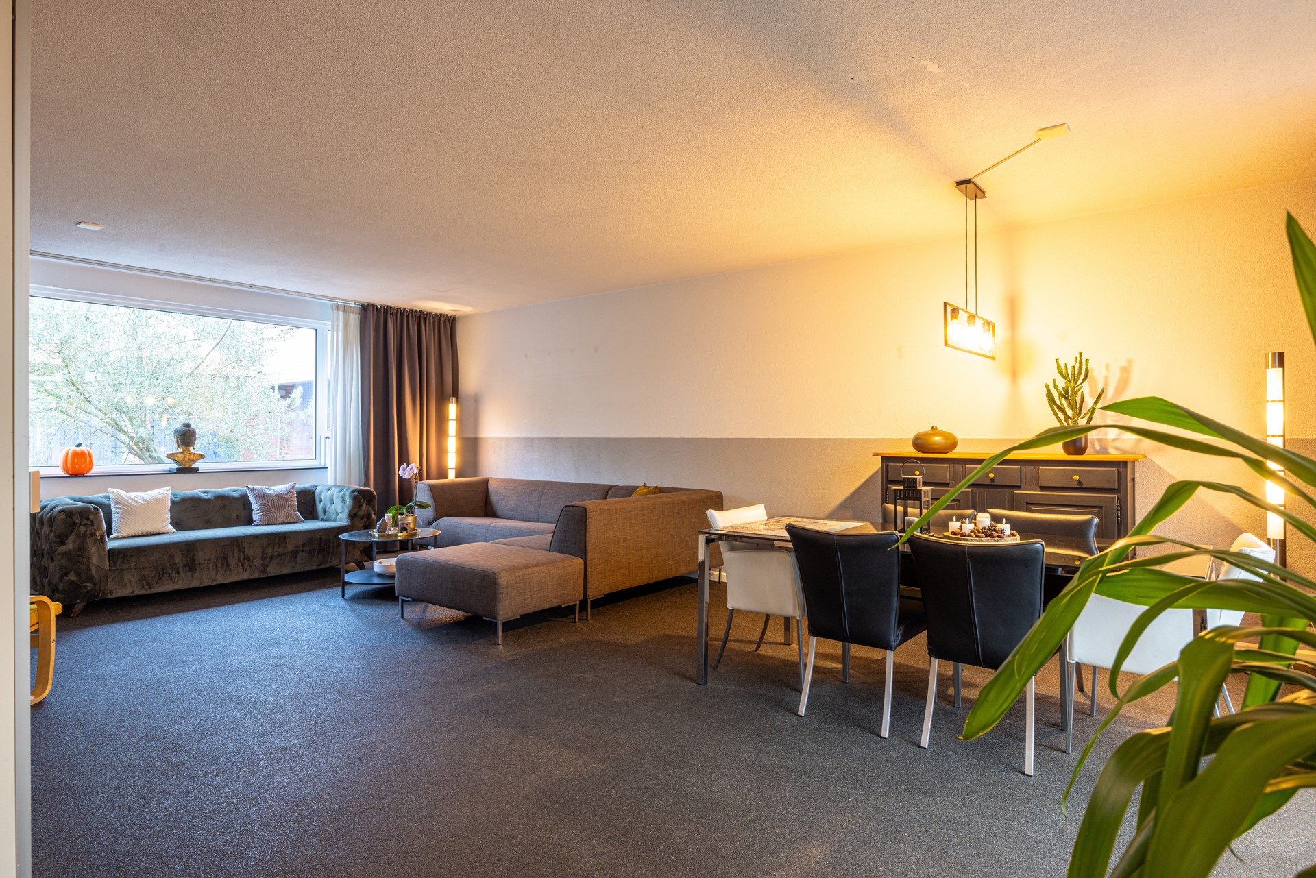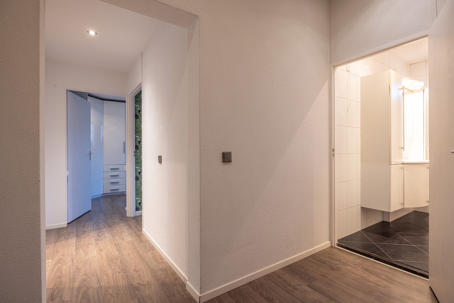 Je stapt binnen in de ontvangsthal, waar een grindvloer ligt die direct zorgt voor een verzorgde, tijdloze uitstraling. Hier bevinden zich de garderobe, meterkast, het toilet en de trapkast, die extra opbergruimte biedt voor bijvoorbeeld schoonmaakspullen, jassen of voorraad. Vanuit de hal stap je door naar de woonkamer.
