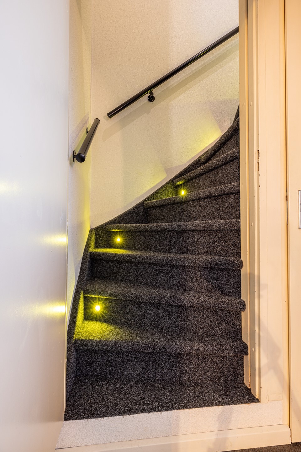 De eerste verdieping bereik je via een houten trap met vloerbedekking, Op de overloop ligt een laminaatvloer die netjes is doorgelegd in alle kamers, wat het geheel een rustige en verzorgde uitstraling geeft.
