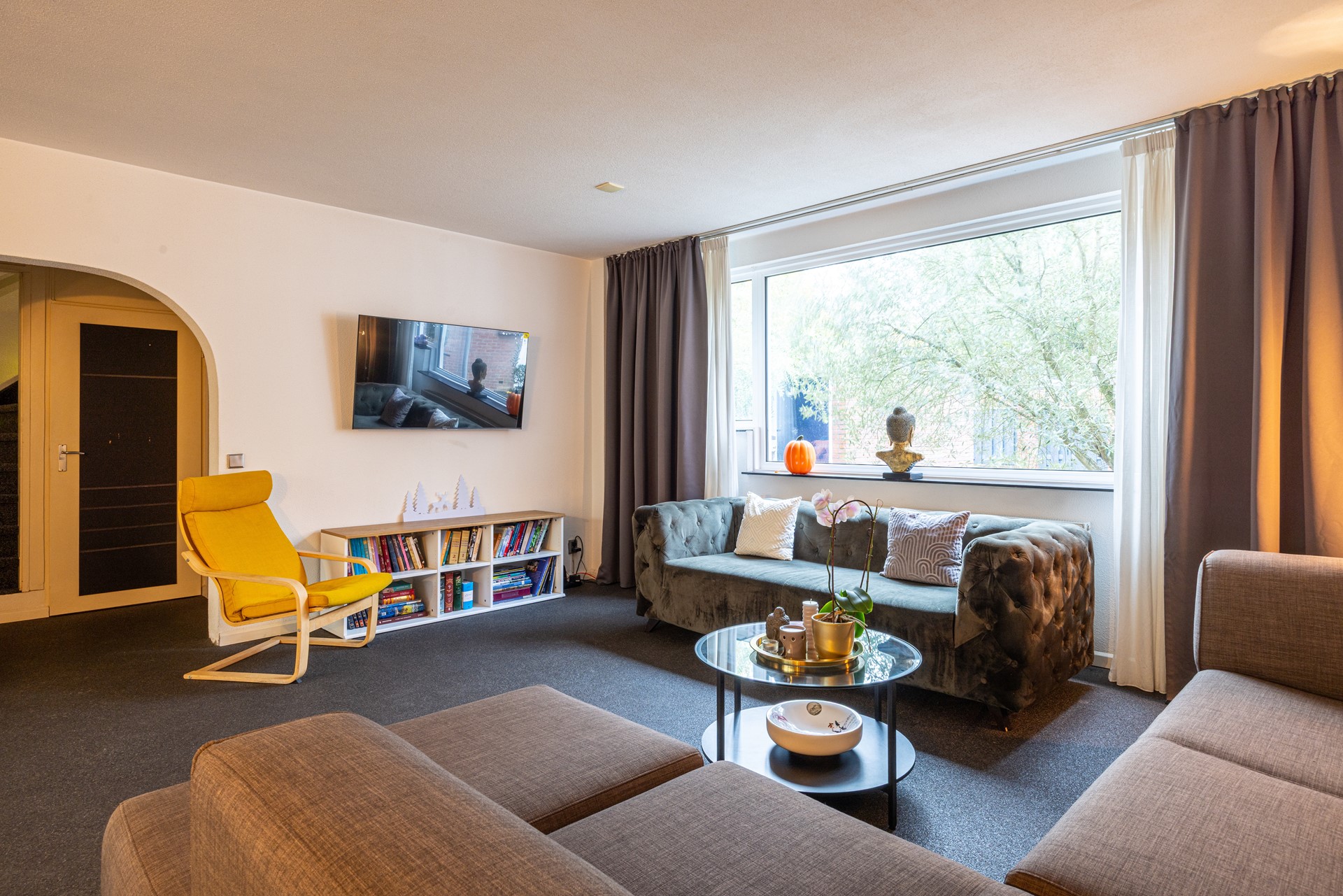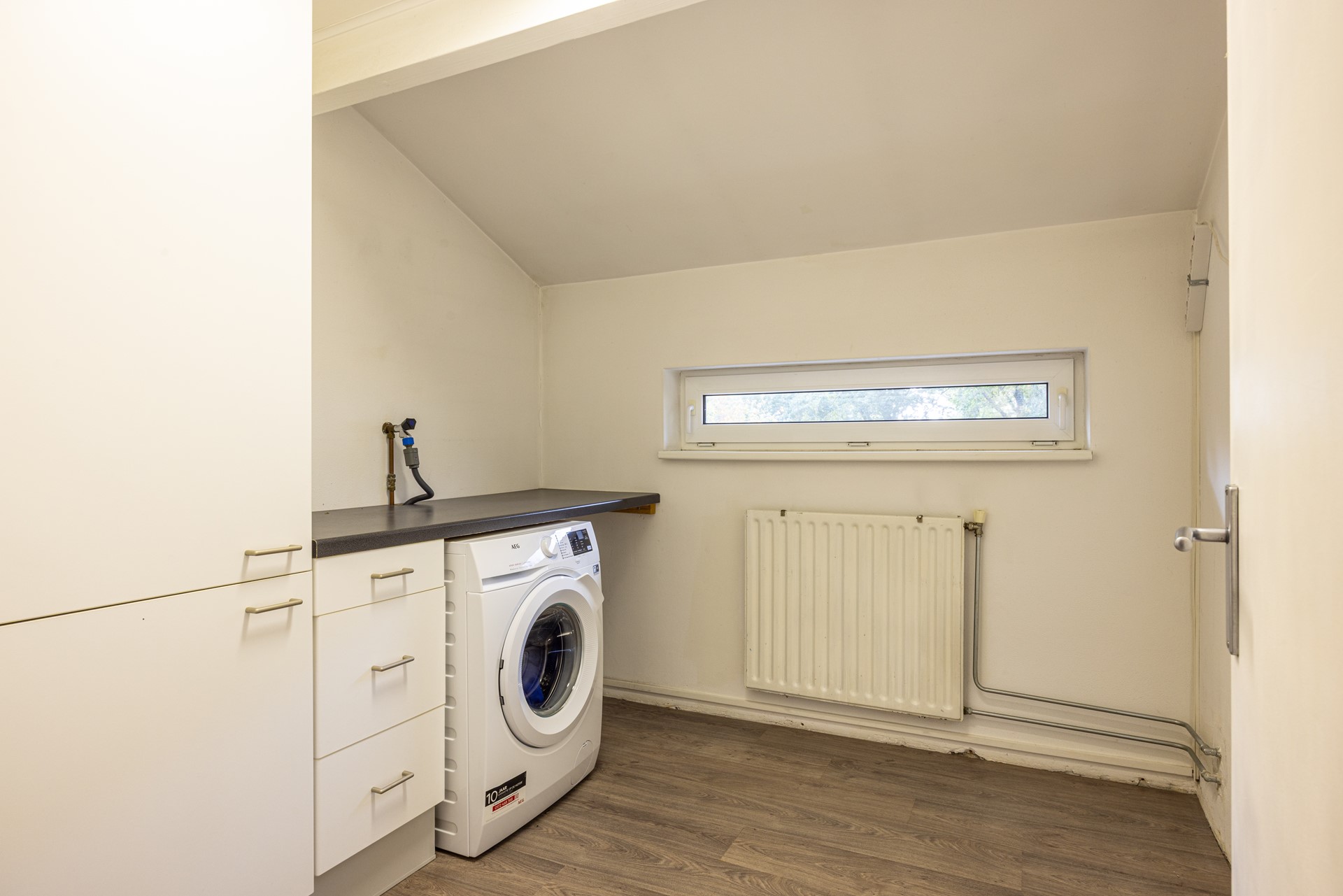 De keuken is compleet en voorzien van diverse inbouwapparatuur, waaronder een 5-pits gasfornuis met wok-brander, wandafzuigkap, oven-combi, koel-vriescombinatie en vaatwasser. Alles wat je nodig hebt om comfortabel te koken is hier aanwezig. Dankzij het raam aan de tuinzijde valt er prettig daglicht binnen, en heb je tijdens het koken mooi uitzicht op de achtertuin.
