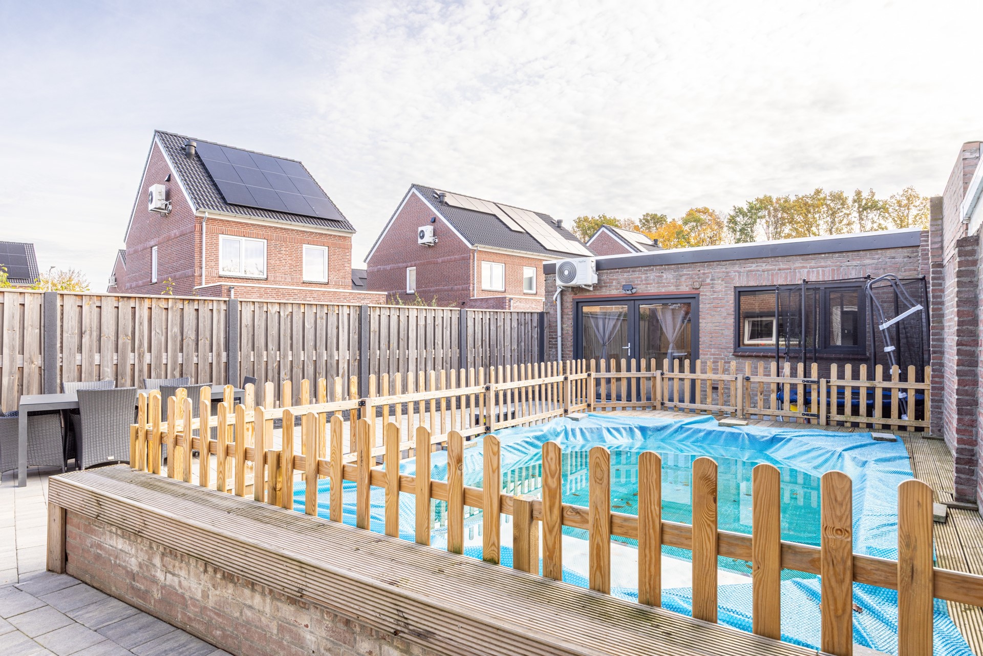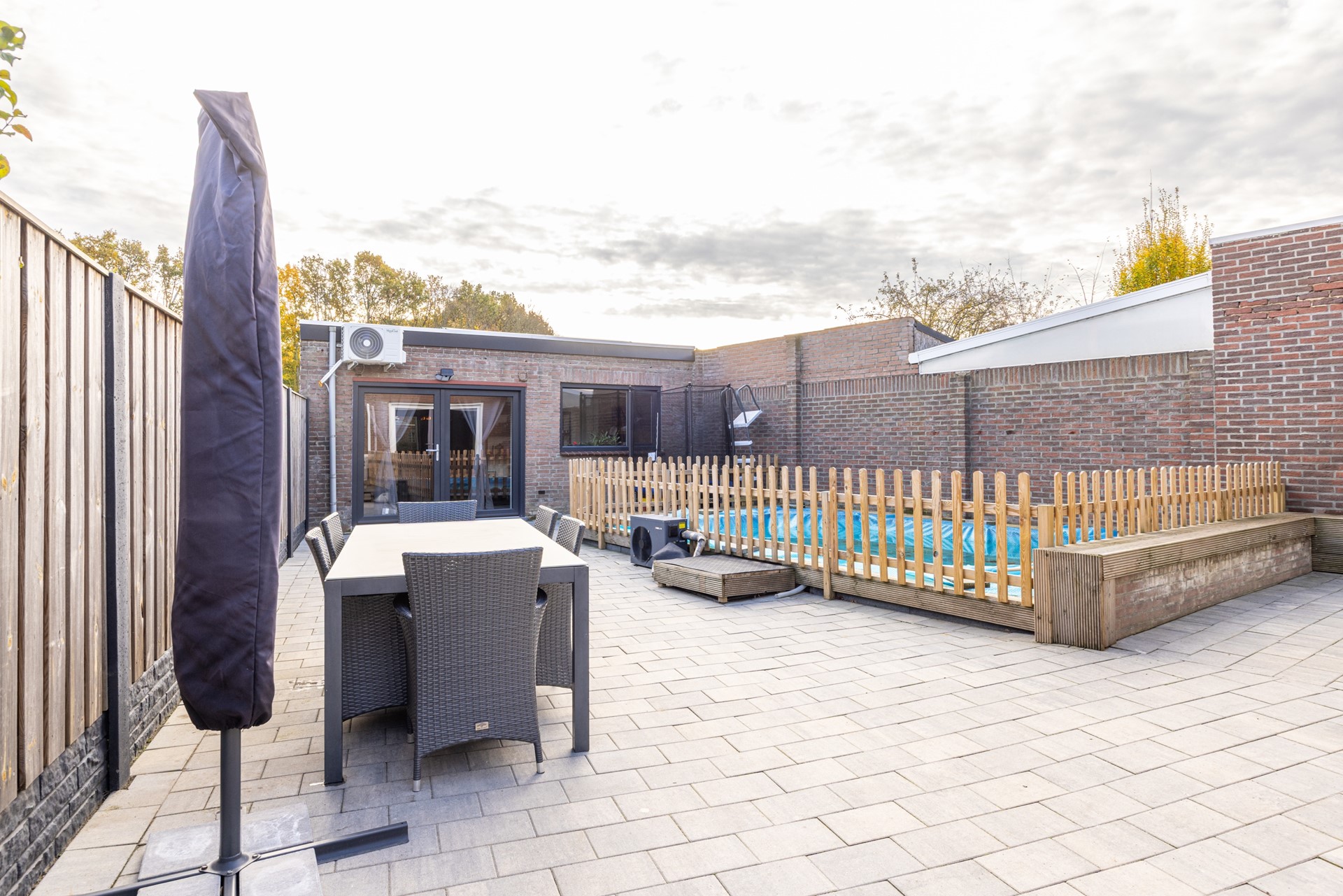 Binnen tref je een lichte, open woonkamer, een ruime leefkeuken met dubbele openslaande deuren naar de tuin, drie volwaardige slaapkamers en een nette badkamer met ligbad. Buiten vind je een onderhoudsvriendelijke tuin met verwarmd zwembad (warmtepomp en zout/glas filter), een dubbele poort naar de oprit en een grote garage/mancave met eigen meterkast en airco. Alles is hier tot in detail verzorgd en met oog voor comfort uitgevoerd, een woning die instapklaar is en volledig klaar voor de toekomst.