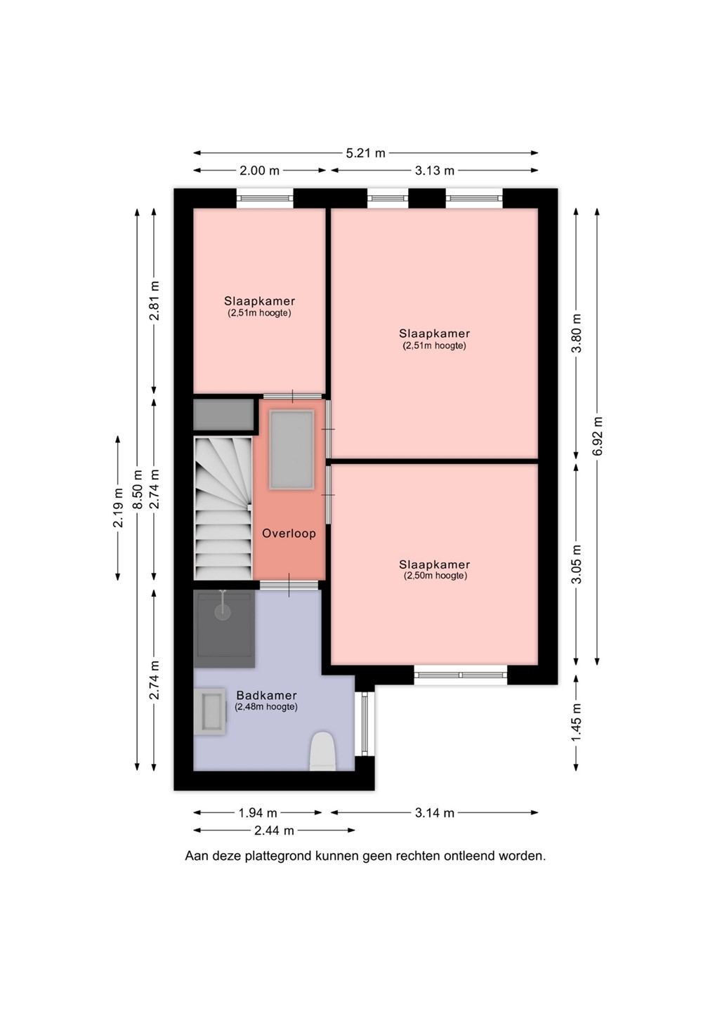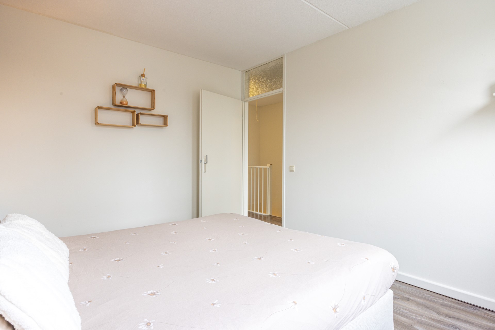 De overloop geeft toegang tot drie slaapkamers en de badkamer. Alle slaapkamers zijn voorzien van een laminaatvloer en hebben een prettige lichtinval. De kamers hebben goede afmetingen en zijn flexibel in gebruik. De kleinste kamer is geschikt als werkkamer, maar kan ook als slaapkamer worden ingericht.