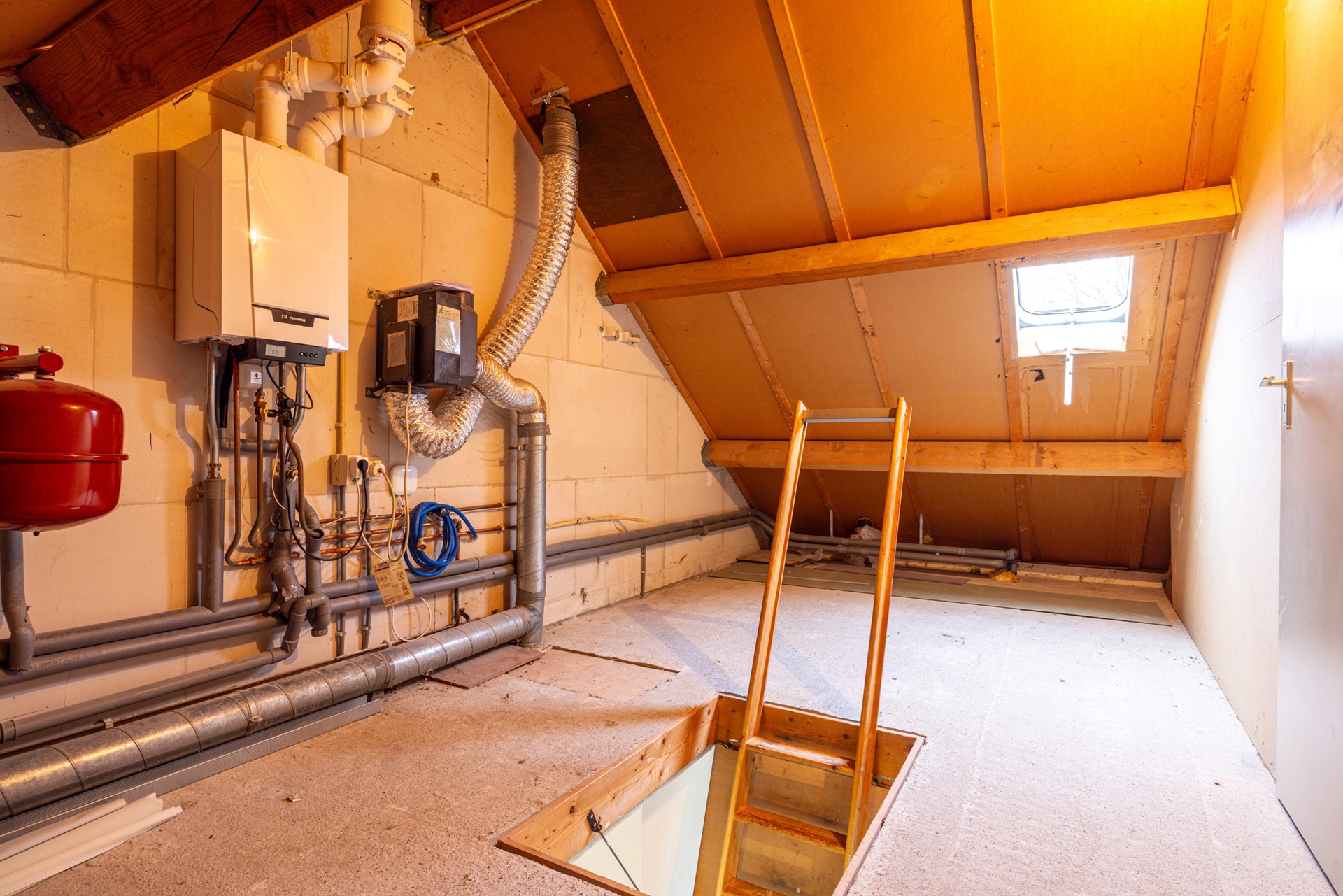 De zolder is bereikbaar via een vlizotrap. Hier bevindt zich de cv-installatie. De ruimte wordt momenteel gebruikt als bergzolder. Met het plaatsen van een vaste trap en het realiseren van extra daglicht kan hier eventueel een extra slaapkamer of hobbyruimte worden gemaakt.