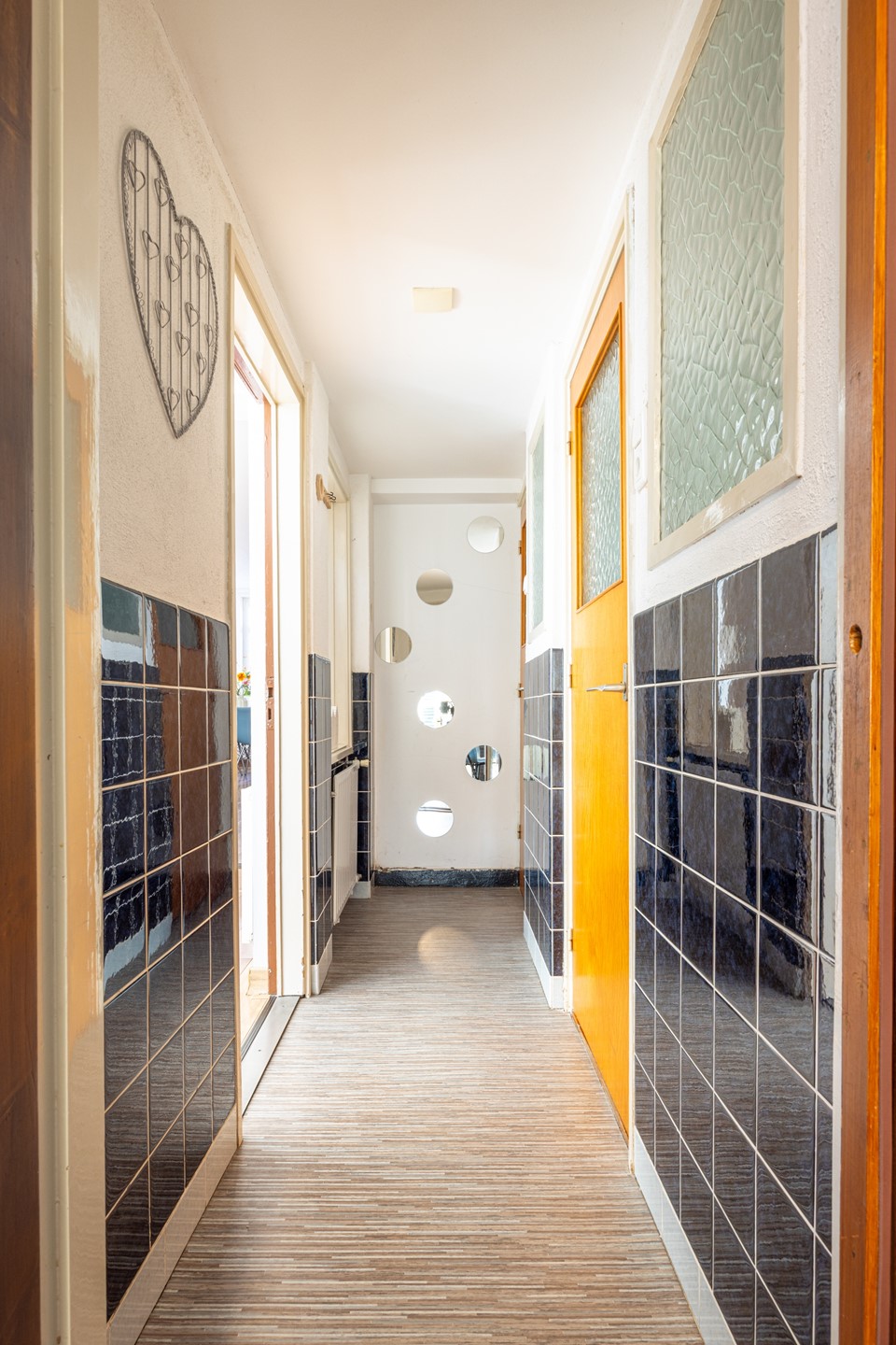 De verzorgde voortuin geeft meteen sfeer aan de woning en zorgt voor een uitnodigende entree. Via het pad loop je naar de voordeur en is er ook toegang tot de patio. Binnenkomst is in de hal met een nette laminaatvloer, garderoberuimte, meterkast en toegang tot de provisiekelder, handig voor voorraad of extra bergruimte.