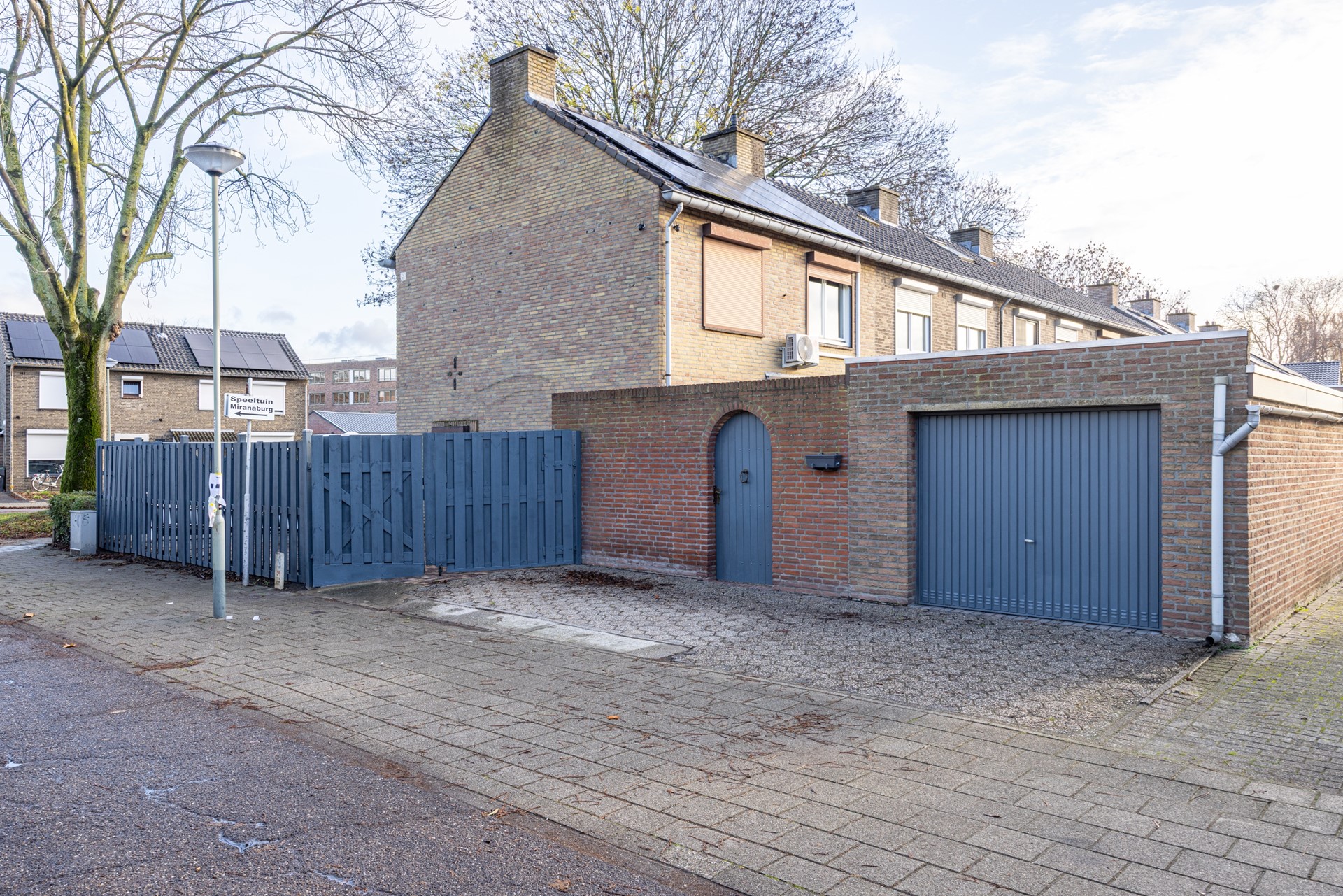 Vanuit de tuin is er bovendien directe toegang tot de inpandige garage en tot de oprit aan de zijkant van de woning. De garage is voorzien van water en elektra en beschikt over een kantelpoort, waardoor deze ruimte praktisch is voor het stallen van een auto, fietsen of extra opslag.