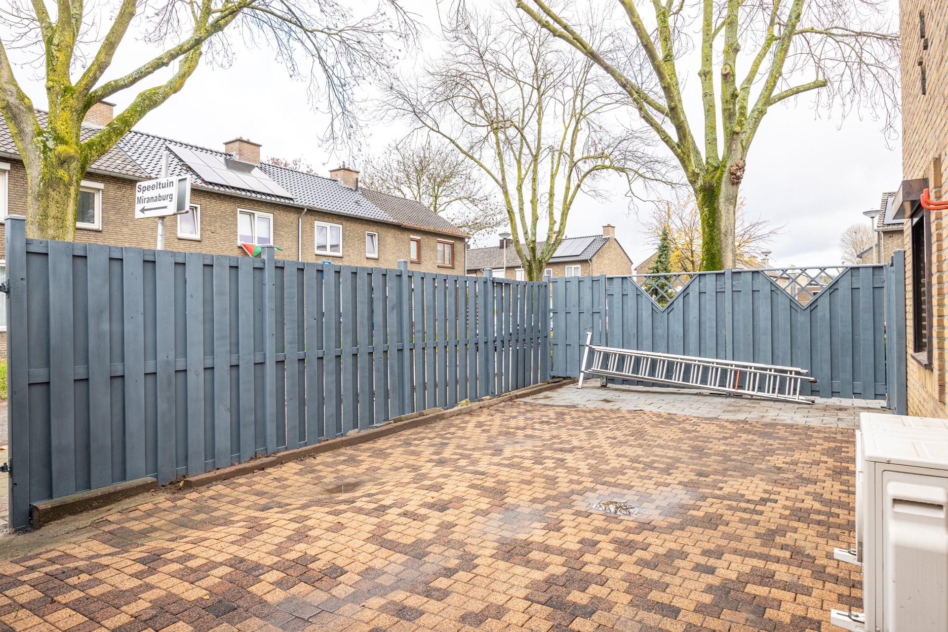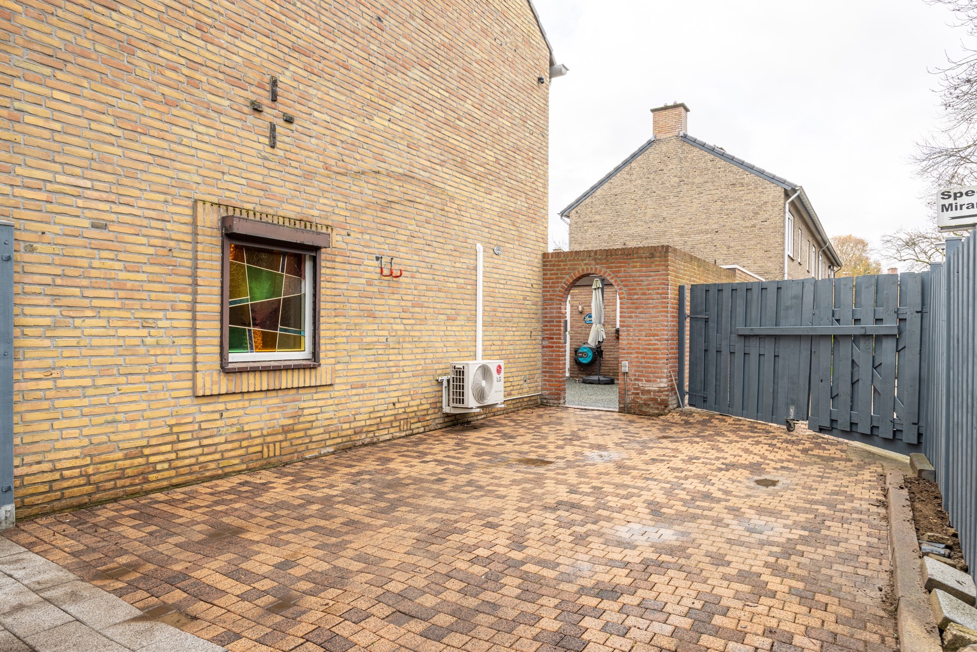 De achtertuin is volledig betegeld en daardoor onderhoudsvriendelijk. De tuin is opgedeeld in twee gedeelten die worden gescheiden door een tussenpoort. Hierdoor kun je kiezen tussen zon en schaduw. Beide tuindelen hebben een eigen achteruitgang.
