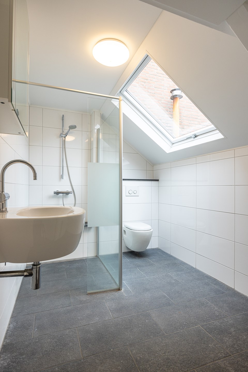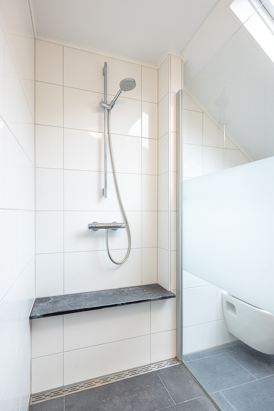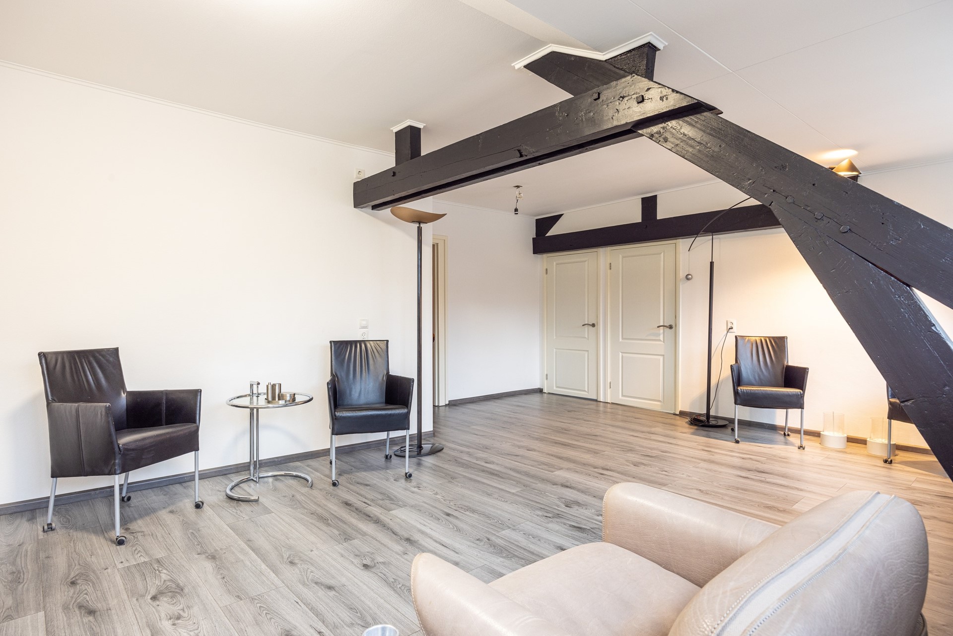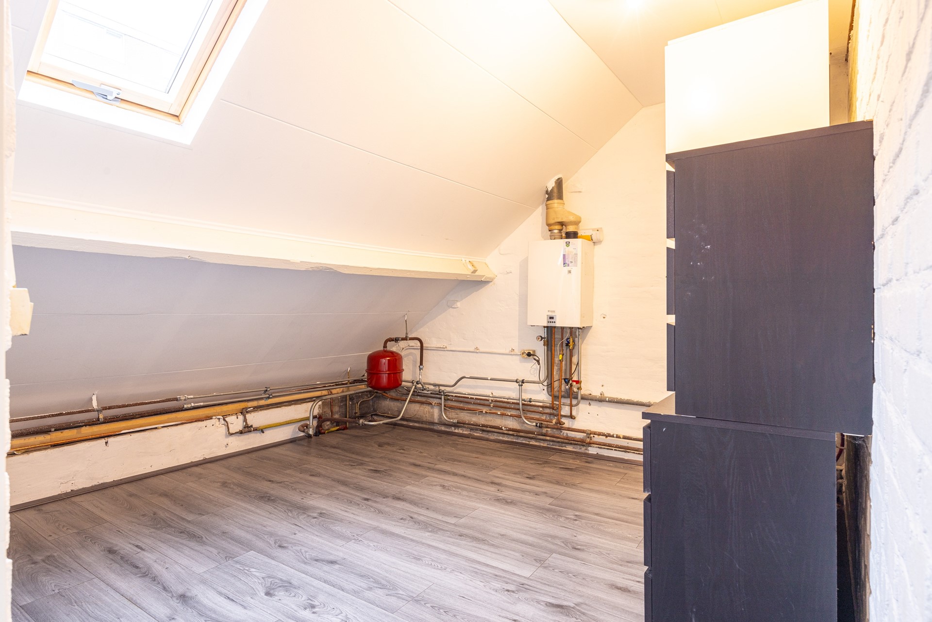 De tweede verdieping biedt extra wooncomfort en flexibiliteit. Je wordt hier verwelkomd in een ruime woonkamer met karakteristieke houten balken, die zorgen voor een prettige en authentieke uitstraling. Daarnaast is deze verdieping voorzien van airconditioning, wat bijdraagt aan een aangenaam binnenklimaat. Indien gewenst bestaat de mogelijkheid om de indeling aan te passen en een tweede slaapkamer te realiseren, waardoor het appartement nog veelzijdiger wordt. De bestaande slaapkamer is ruim opgezet en geniet van prettig natuurlijk daglicht. Daarnaast is er een praktische berging aanwezig met veel opbergruimte en de opstelling van de cv-installatie, wat zorgt voor extra gemak. De badkamer is netjes afgewerkt, volledig betegeld en ingericht met een inloopdouche met glazen douchewand, een wastafel met verlichte spiegel en een toilet.