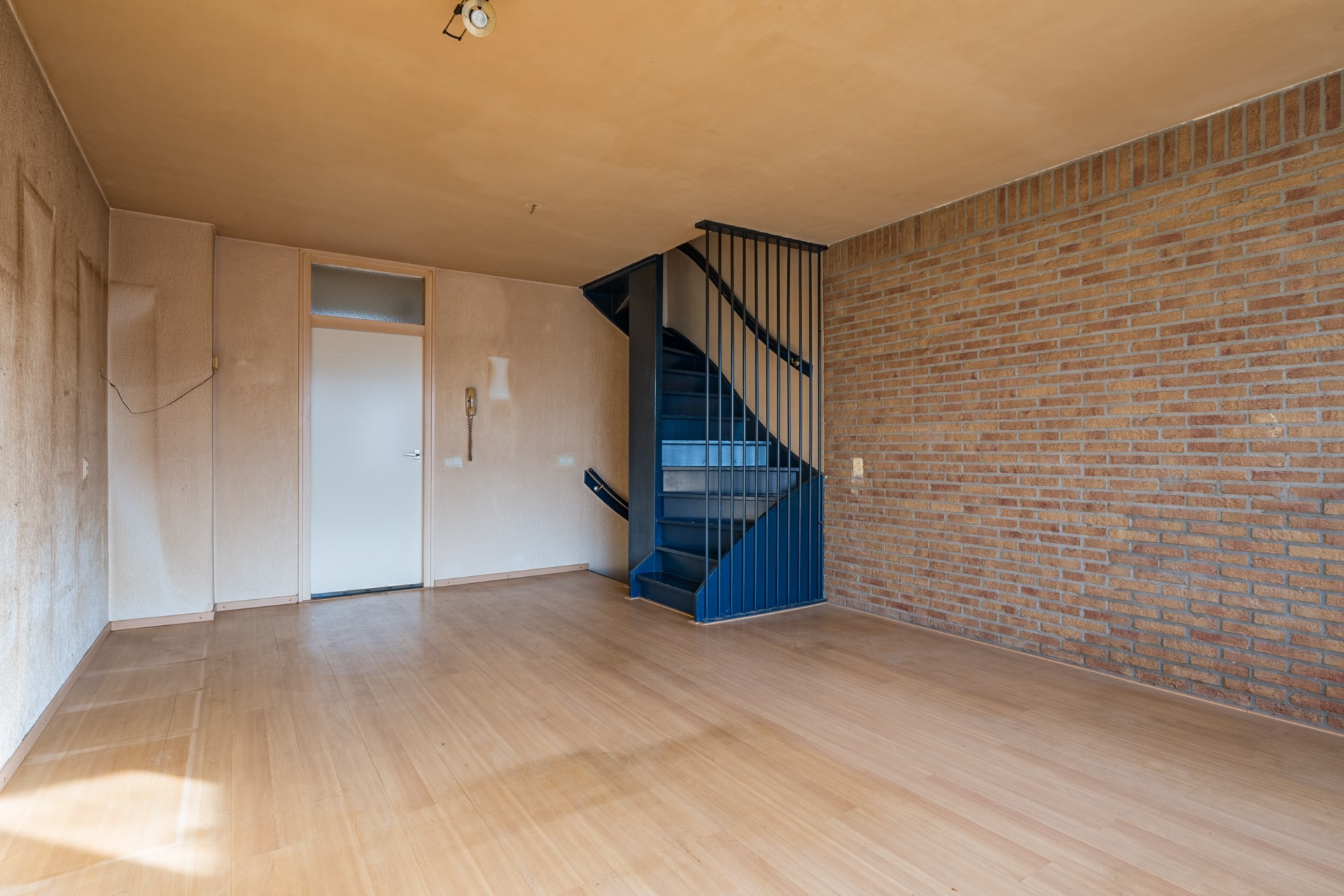 Op de eerste verdieping bevindt zich de woonkamer. Deze is afgewerkt met een laminaatvloer en beschikt over een groot raam met toegang tot het balkon aan de voorzijde. Dankzij de grote raampartij valt er prettig daglicht naar binnen. De keuken is gesloten en biedt voldoende ruimte om geheel naar eigen wens een nieuwe keukenopstelling te realiseren. Ook hier zorgt een groot raam voor natuurlijke lichtinval. De indeling maakt het mogelijk om een moderne en functionele keuken te creëren die volledig aansluit bij jouw woonwensen.