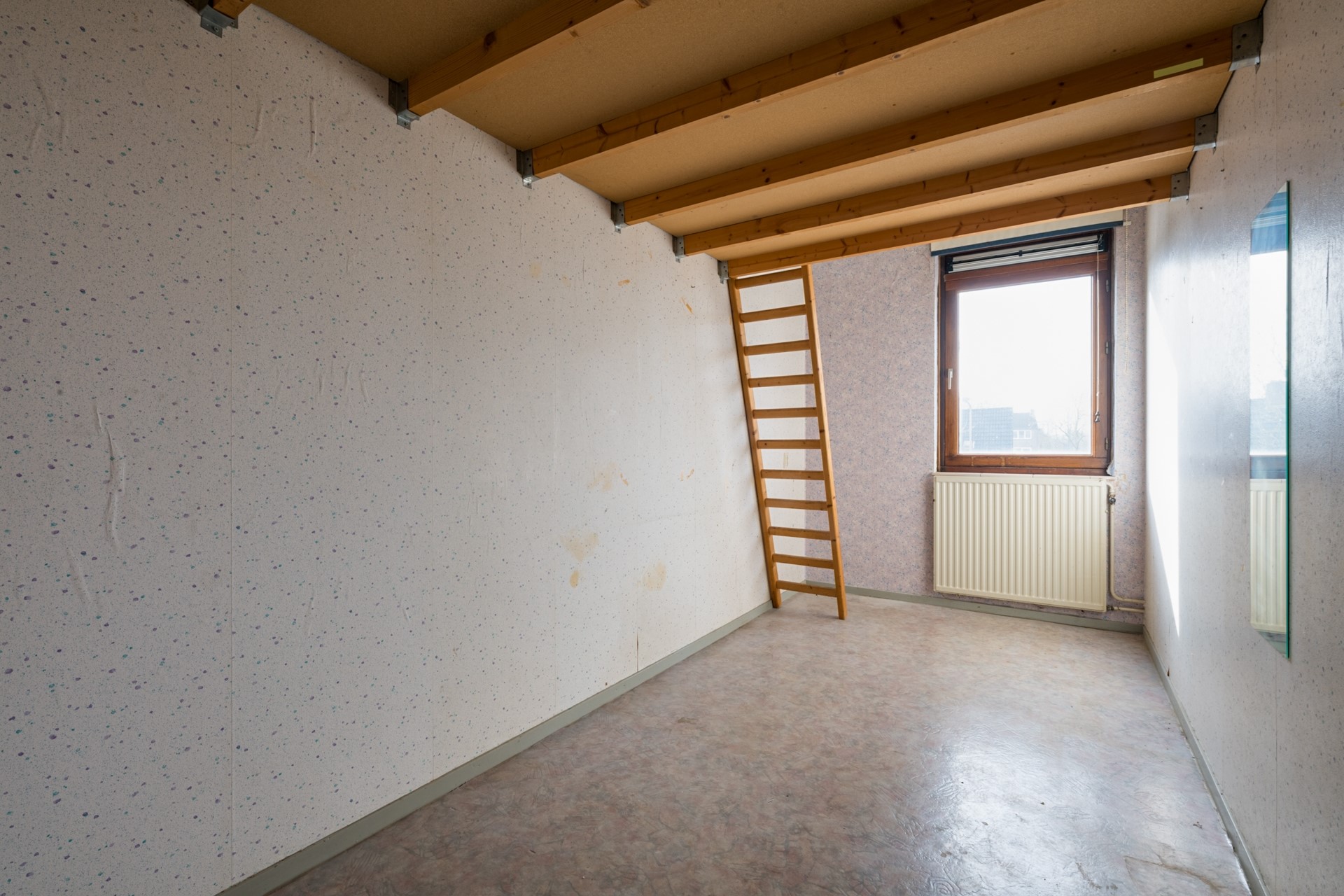 Via de woonkamer bereik je de tweede verdieping. De overloop geeft toegang tot de grootste slaapkamer, gelegen aan de achterzijde van de woning. Deze kamer is voorzien van een laminaatvloer en beschikt over veel daglicht. Vanuit een tweede hal zijn nog twee slaapkamers en de badkamer bereikbaar. De twee extra slaapkamers zijn voorzien van een pvc-vloer en beschikken eveneens over daglicht. Eén van de slaapkamers is uitgerust met een vliering, wat zorgt voor extra bergruimte. De kamers zijn praktisch van formaat en geschikt als kinder-, werk- of logeerkamer. De badkamer is ingedeeld met een wastafel, toilet en douche.