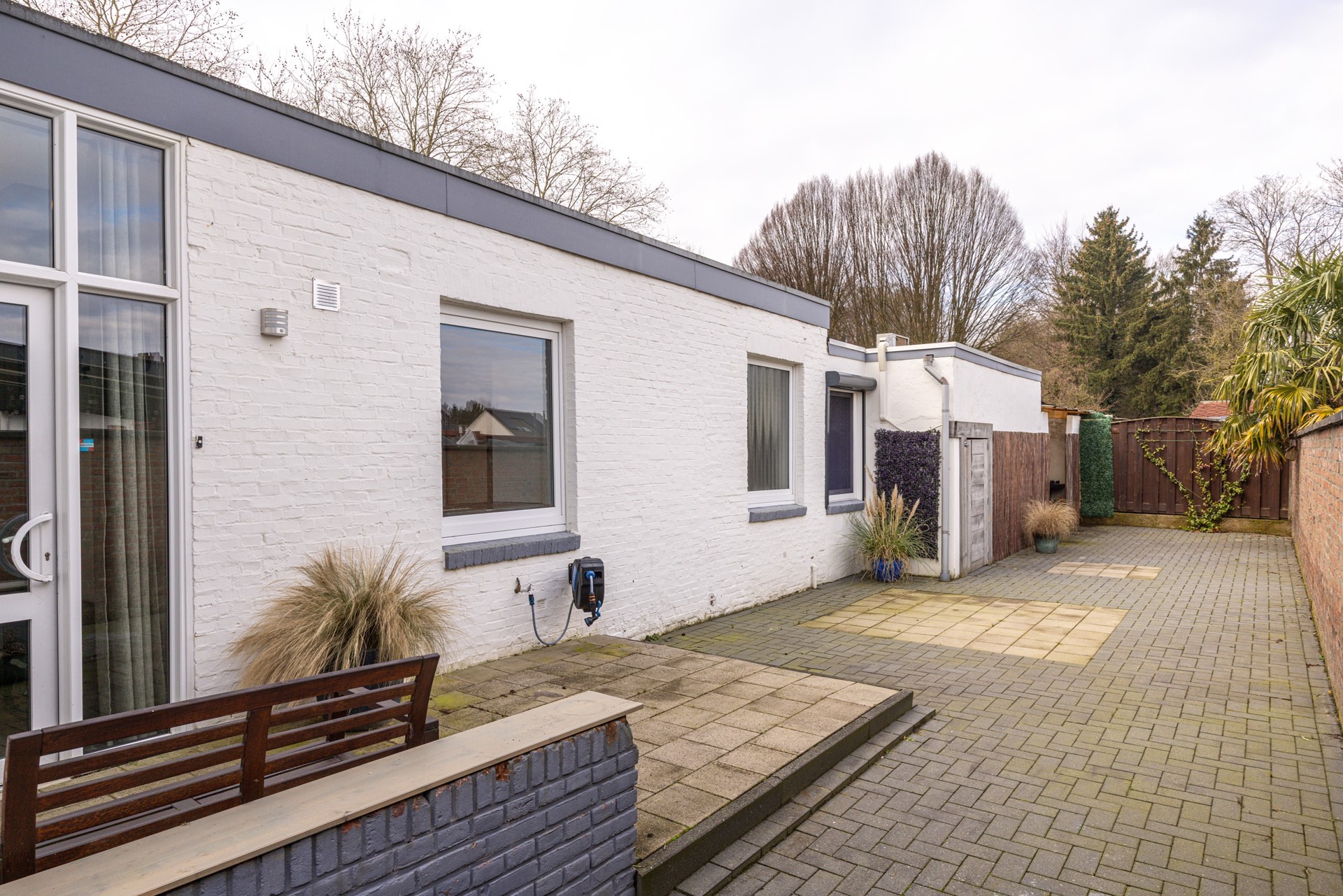 Bij de onderwoning hoort een berging, voorzien van verlichting en elektra, ideaal voor extra opslag. Daarnaast is er een bergkelder, die wordt gedeeld met de bovenwoning en geschikt is voor het opbergen van voorraad of overige spullen. De tuin is volledig bestraat en onderhoudsvriendelijk aangelegd. Achterin bevindt zich een overkapping met licht doorlatende dakplaten, waar je beschut en in alle privacy kunt zitten. Een fijne buitenruimte met voldoende plaats voor een loungehoek en barbecue.