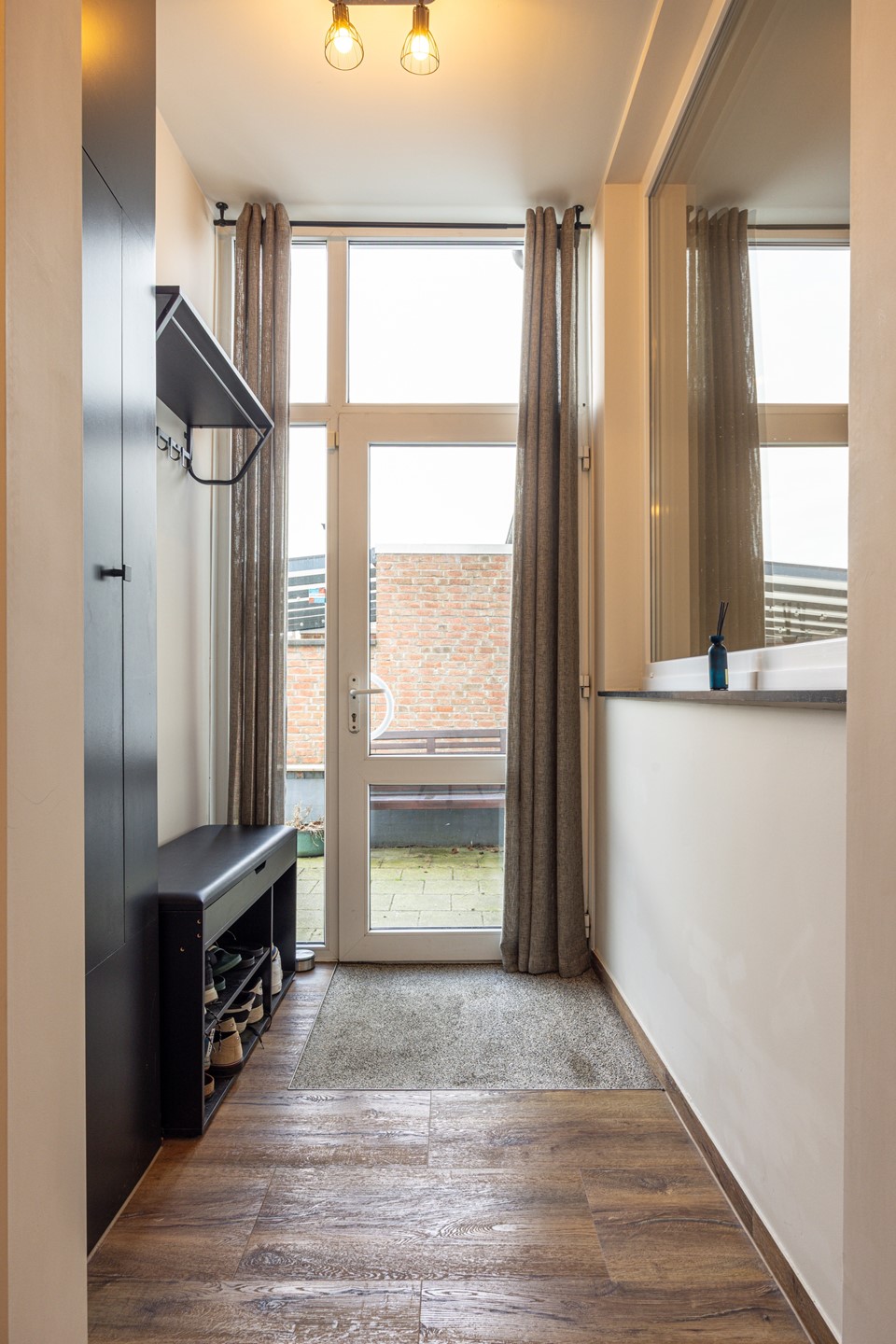 Woning Via de entree kom je in de ontvangsthal, die is afgewerkt met een pvc vloer in houtmotief en geeft een verzorgde eerste indruk. In de hal bevinden zich de garderobe en de meterkast. Vanuit hier is er toegang tot de woonkamer en de keuken.