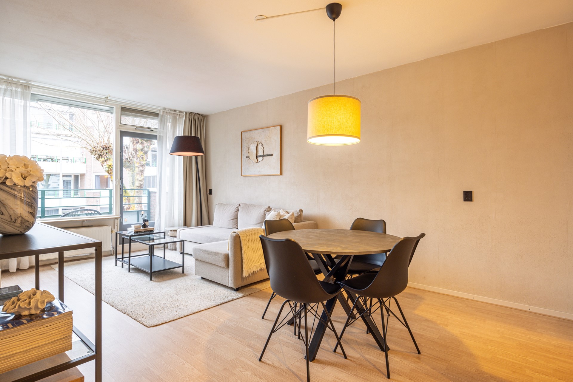 De woonkamer vormt het hart van de woning en biedt toegang tot het balkon, waar je comfortabel buiten kunt zitten. Dankzij de open indeling en het prettige daglicht voelt het appartement ruim en aangenaam aan. Met twee slaapkamers, een badkamer met ligbad en een separaat toilet is dit een fijn appartement wat zo goed als instapklaar is.