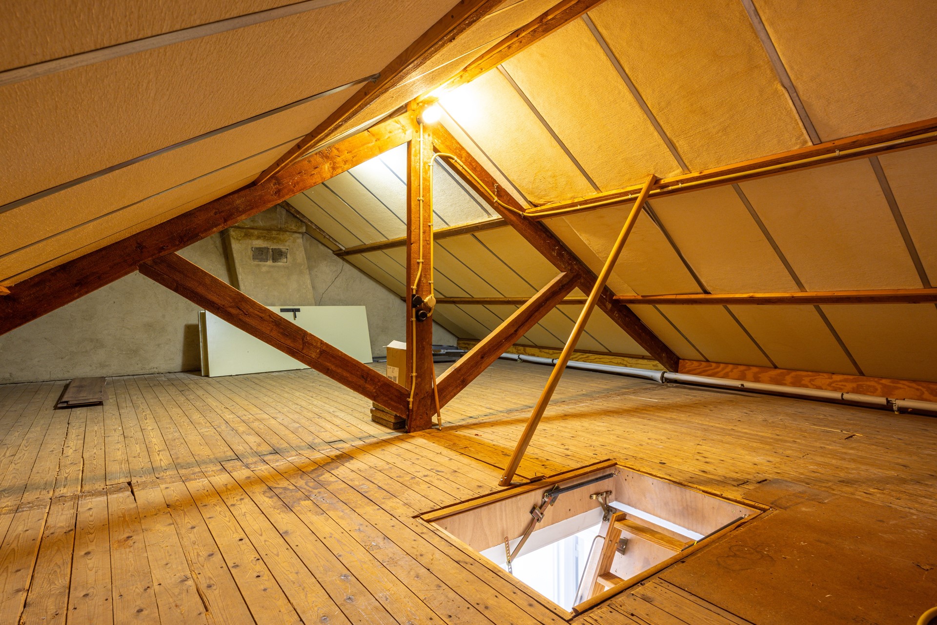 Via een vlizotrap is de ruime zolder bereikbaar. Deze verdieping is volledig geïsoleerd en biedt volop bergruimte. Hier bevinden zich tevens de cv-installatie en de omvormer van de zonnepanelen.