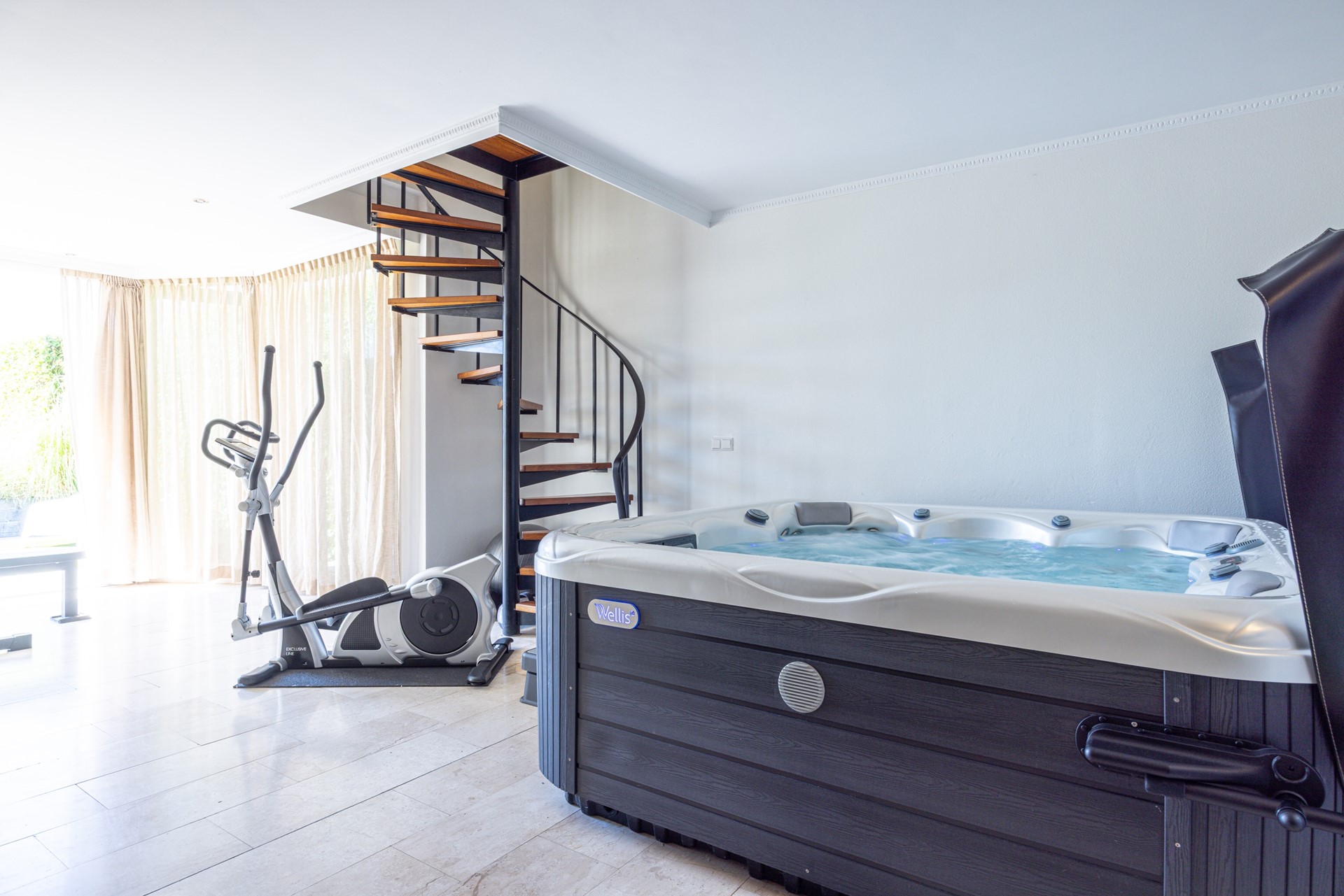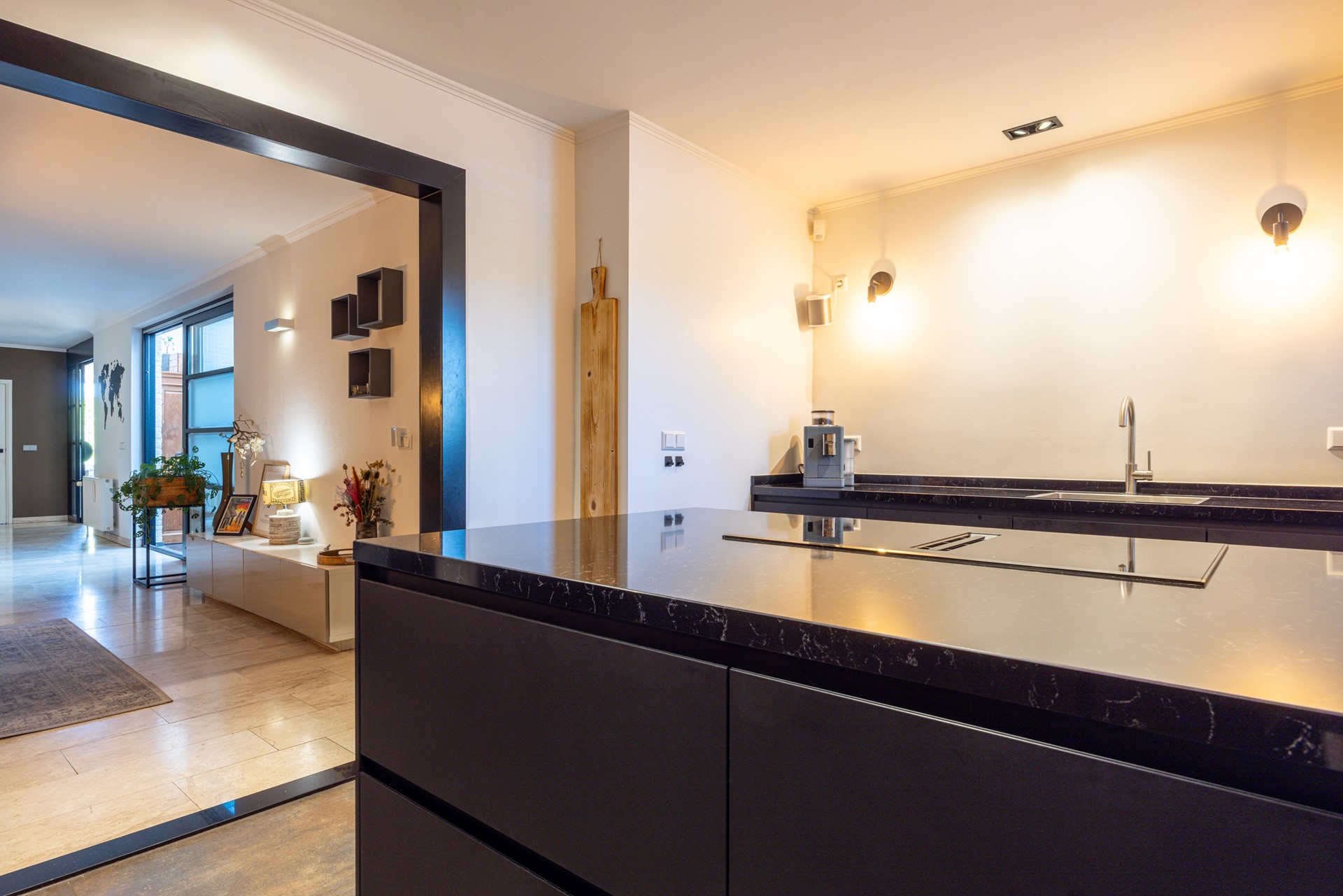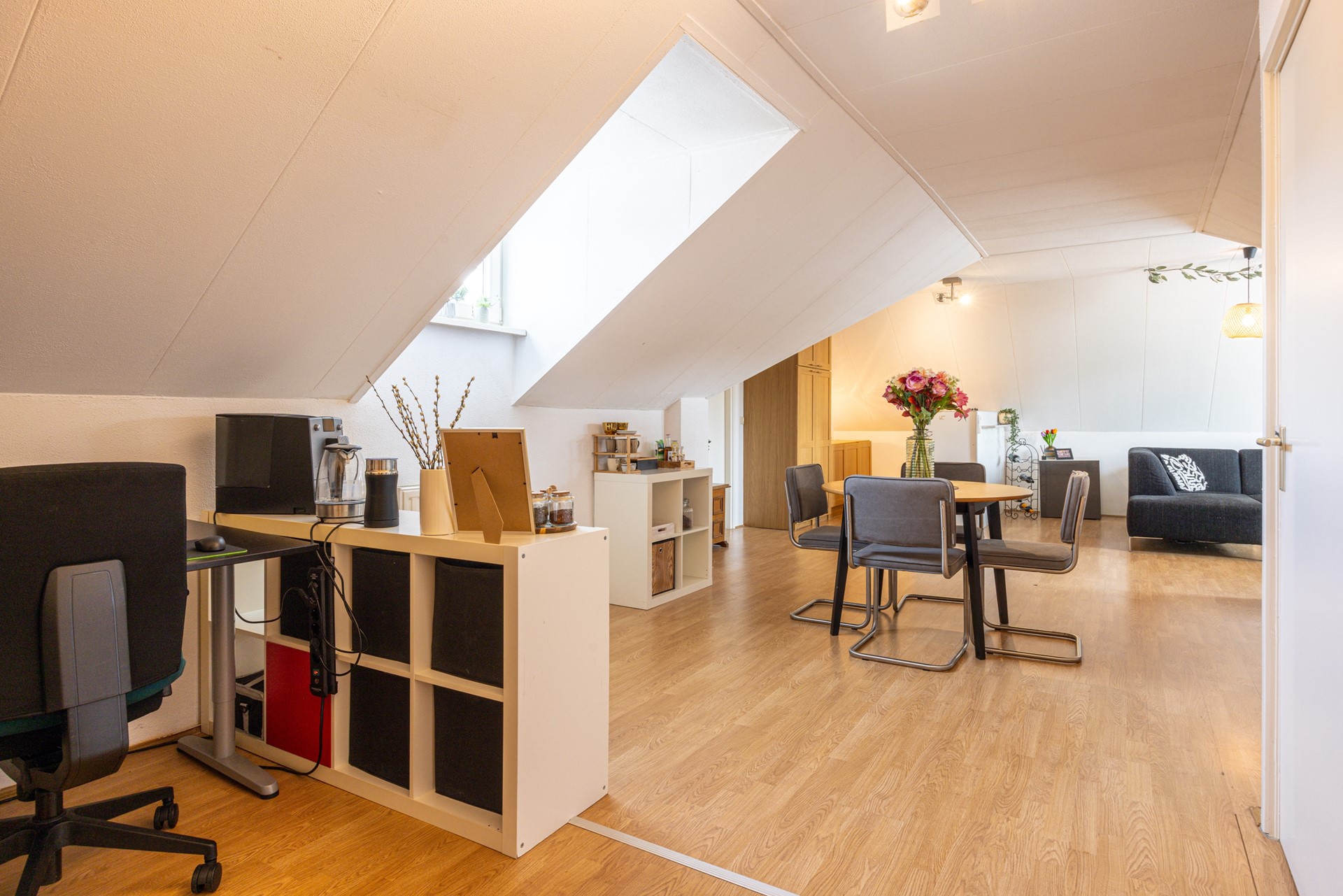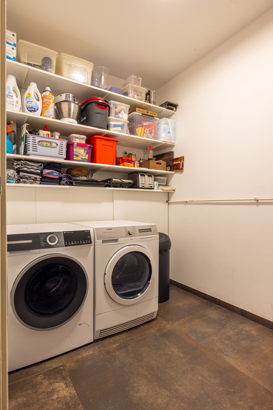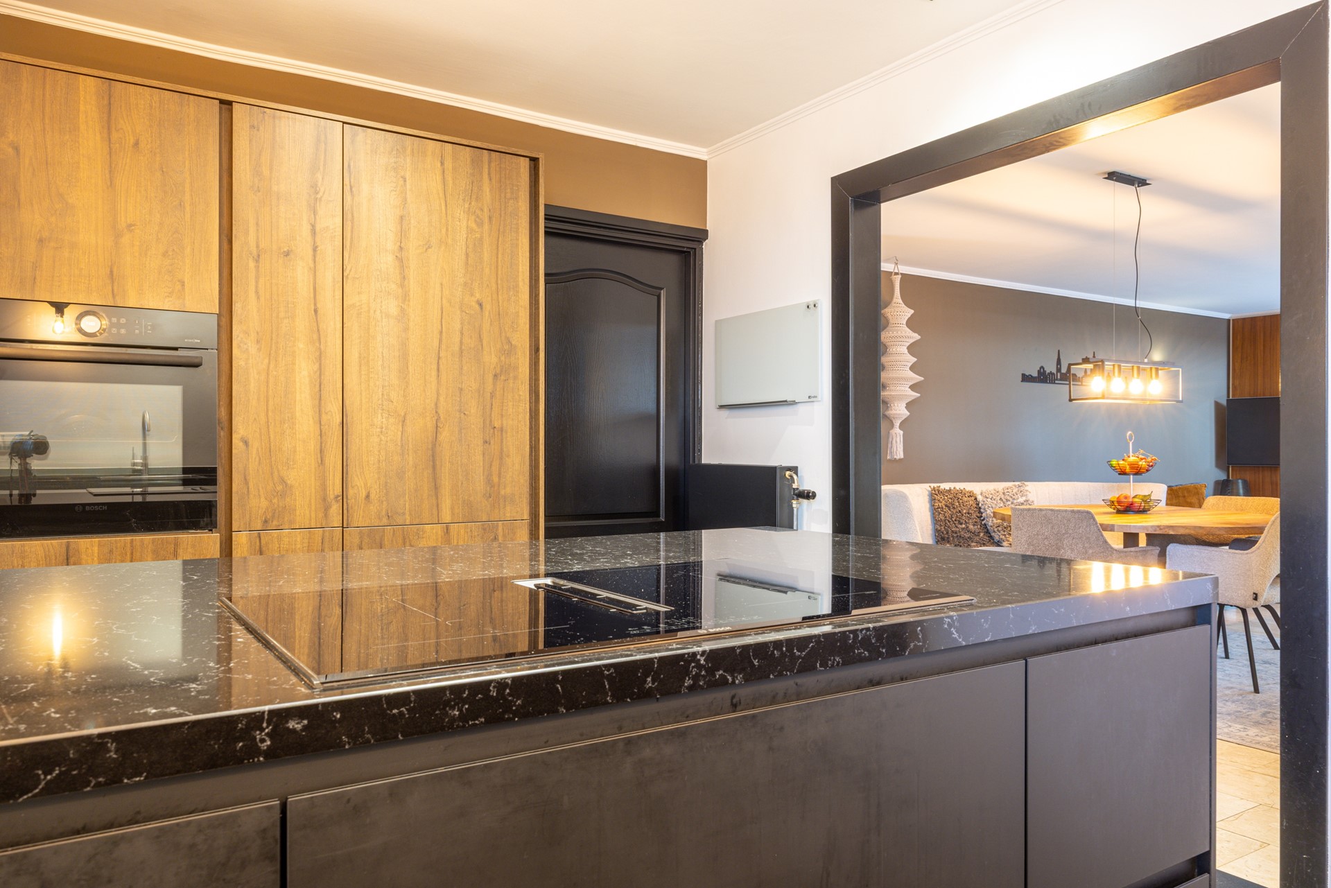 Via een wenteltrap is er een directe verbinding met de wellnessruimte op de begane grond, wat zorgt voor een praktische en bijzondere indeling. De open keuken sluit hier naadloos op aan en beschikt over voldoende kastruimte, waardoor deze verdieping als een compleet en zelfstandig geheel te gebruiken is.