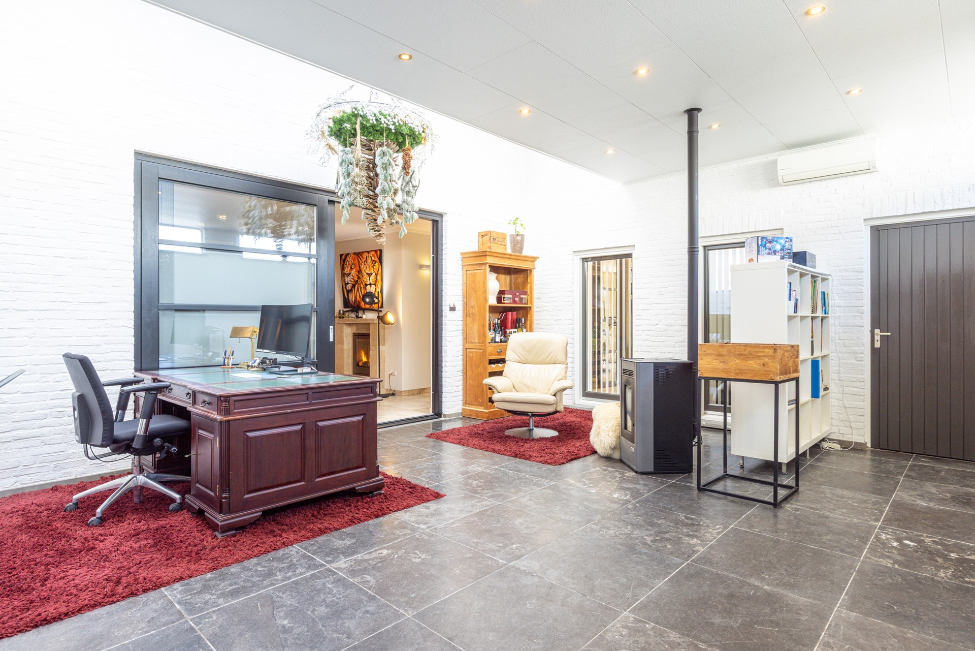 De begane grond biedt daarnaast extra gebruiksmogelijkheden met een inpandige kantoorruimte, voorzien van tegelvloer, vloerverwarming en airco (koelen en verwarmen).