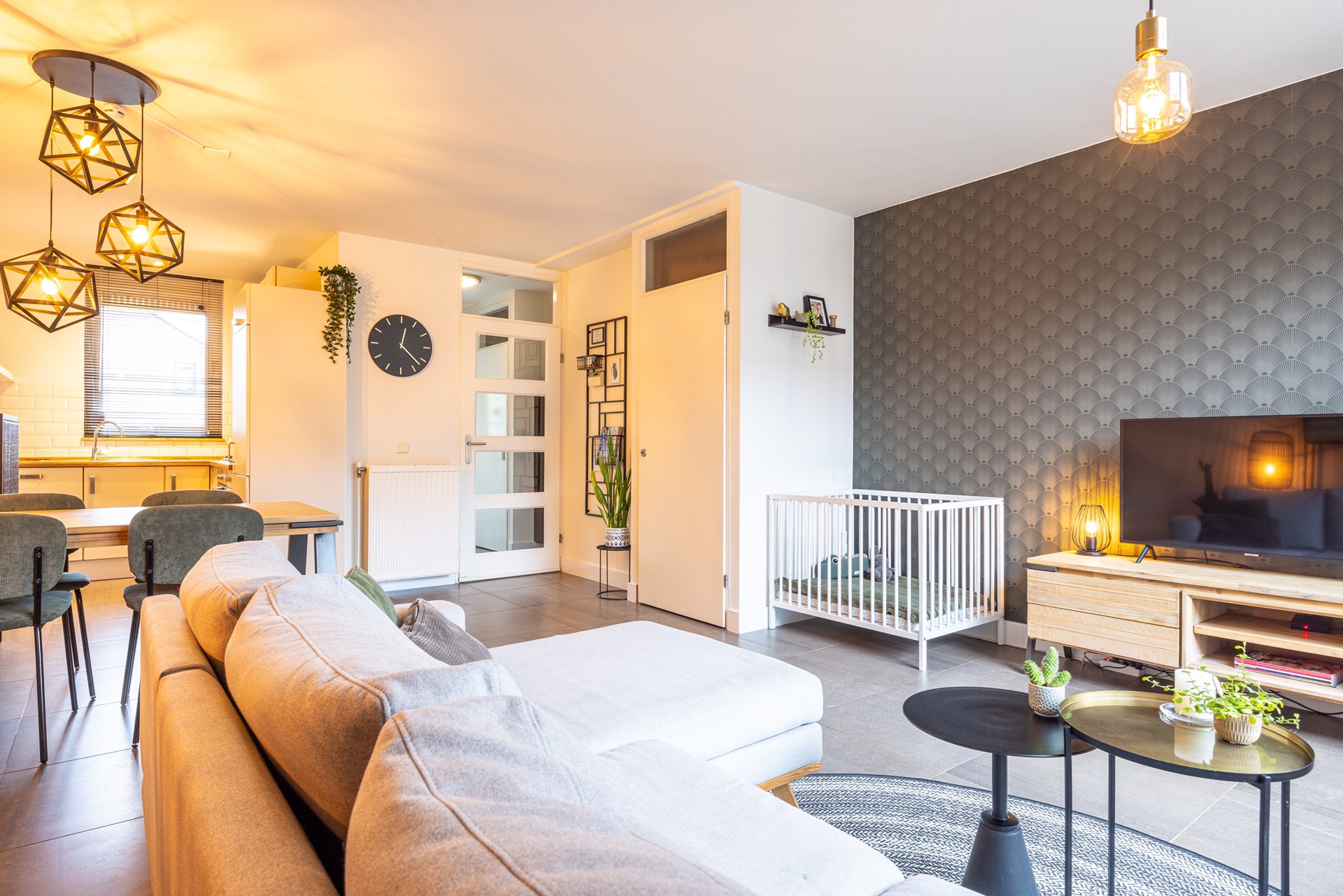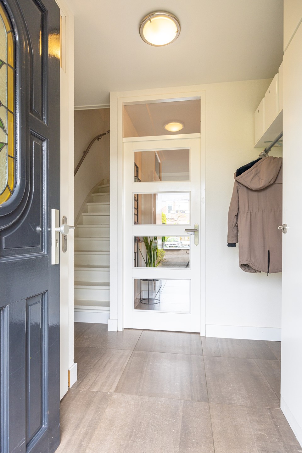 Bij aankomst valt direct de nette voortuin en eigen oprit op. In de ontvangsthal vind je een tegelvloer, een garderobe, de meterkast en het toilet. Vanuit hier stap je de woonkamer binnen.