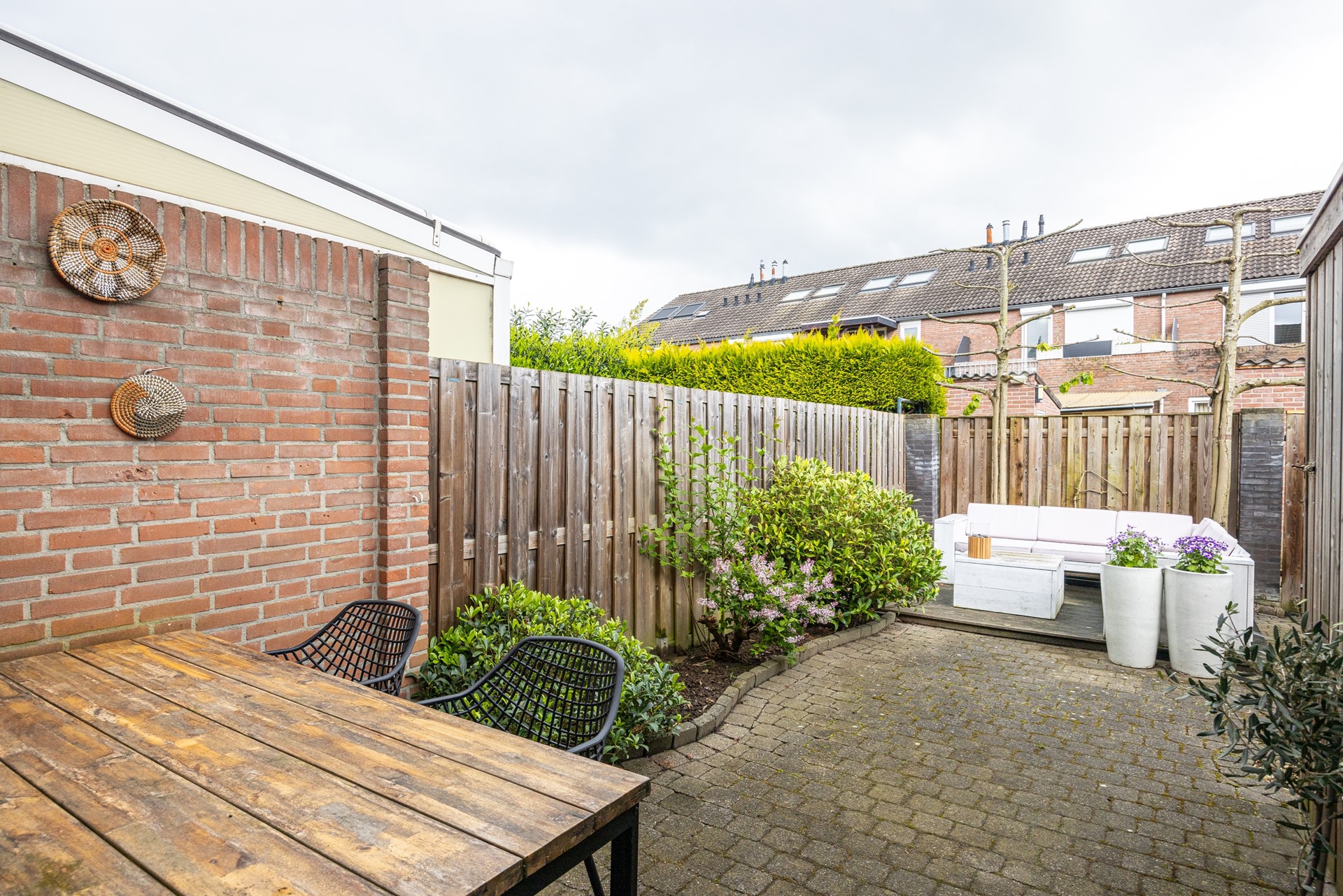 De achtertuin is netjes onderhouden en voorzien van een praktische schuur en een apart fietshok. Kortom, een ideale woning voor wie comfortabel wil wonen met alle voorzieningen en het stadsleven binnen handbereik.