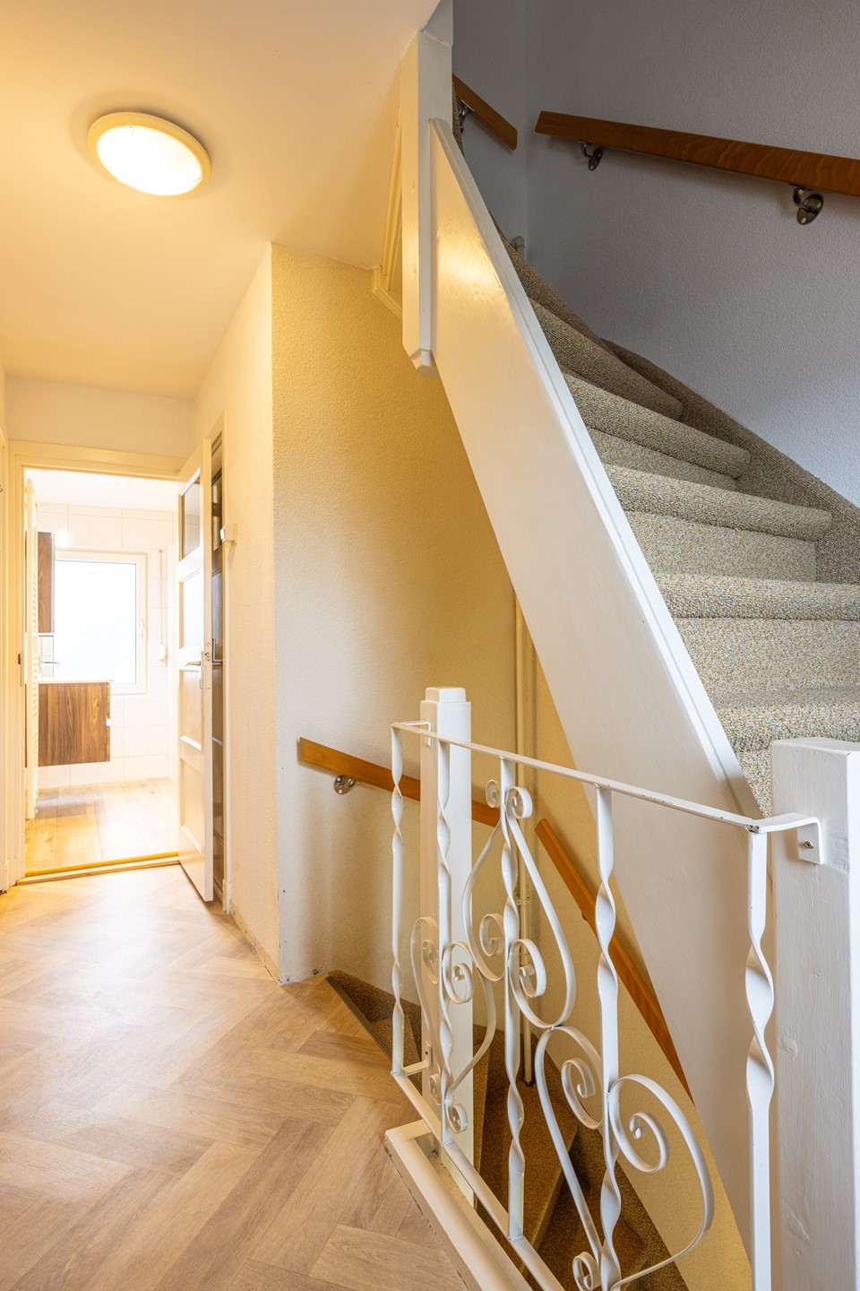 Via een vaste trap is de tweede verdieping bereikbaar. Hier kom je eerst op de overloop waar zich de technische ruimte met de cv-installatie bevindt.