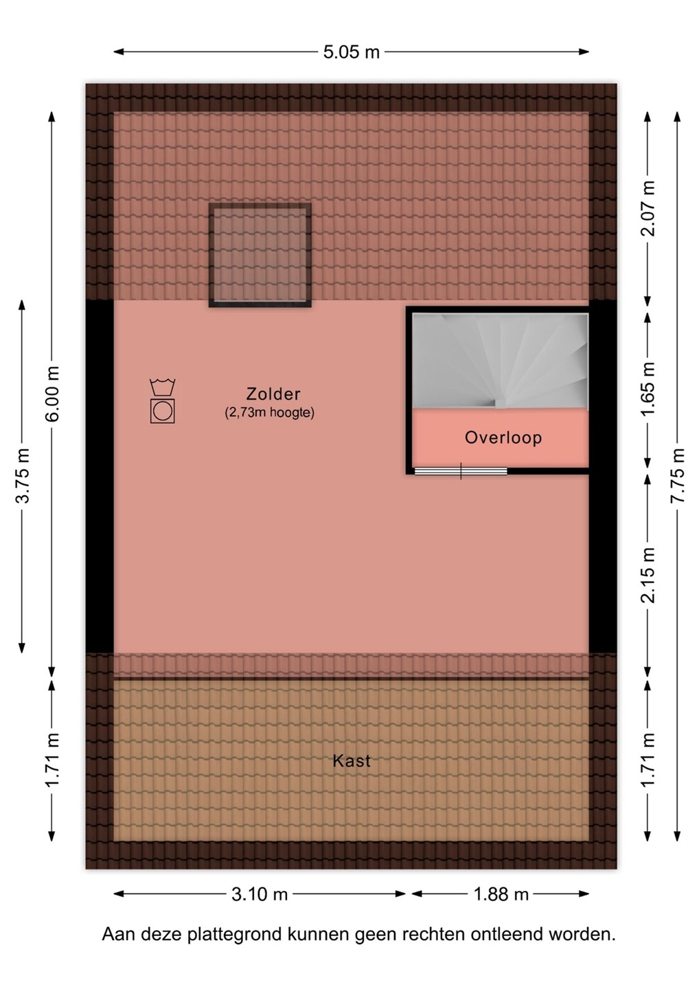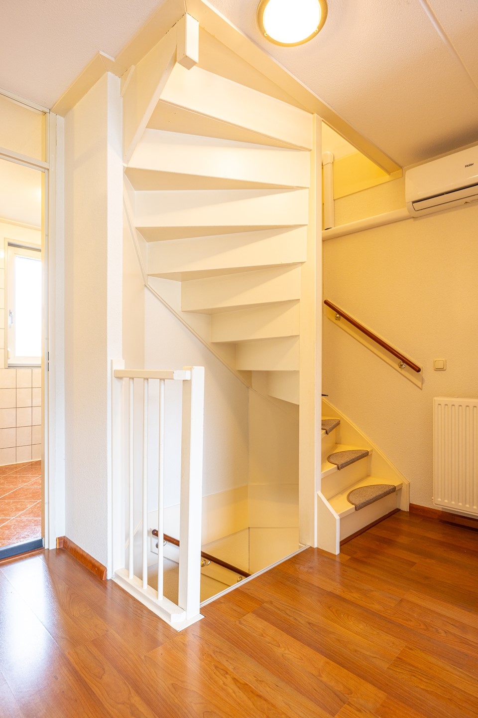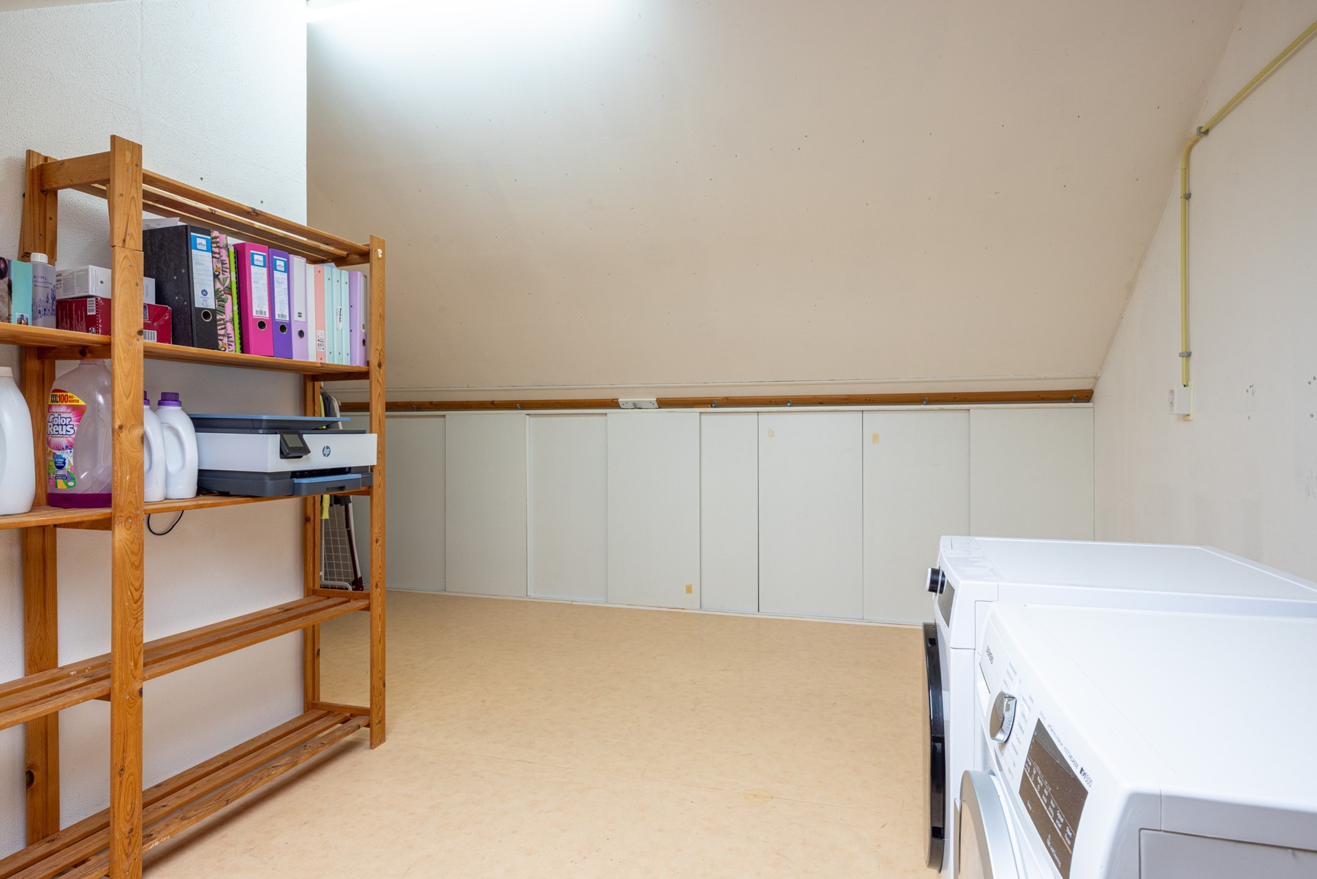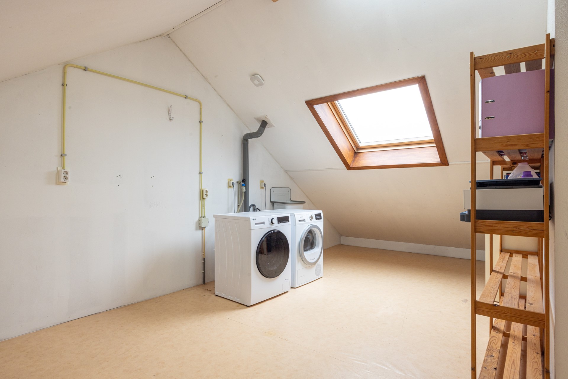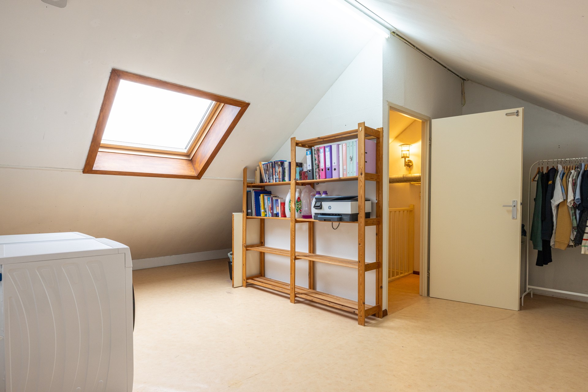 Via een vaste trap bereikt u de tweede verdieping. Deze beschikt over een kleine overloop en een grote ruimte met dakraam, waar de witgoedaansluitingen aanwezig zijn. Deze verdieping is ideaal als thuiswerkplek, hobbyruimte of extra opslag.