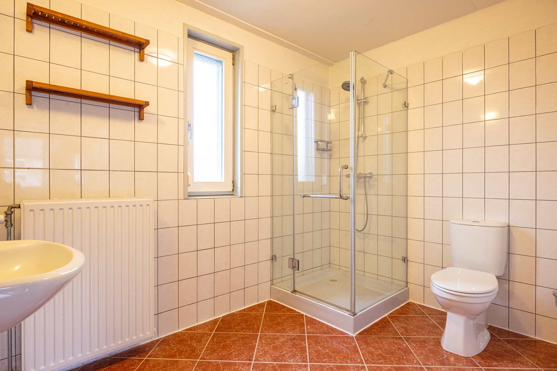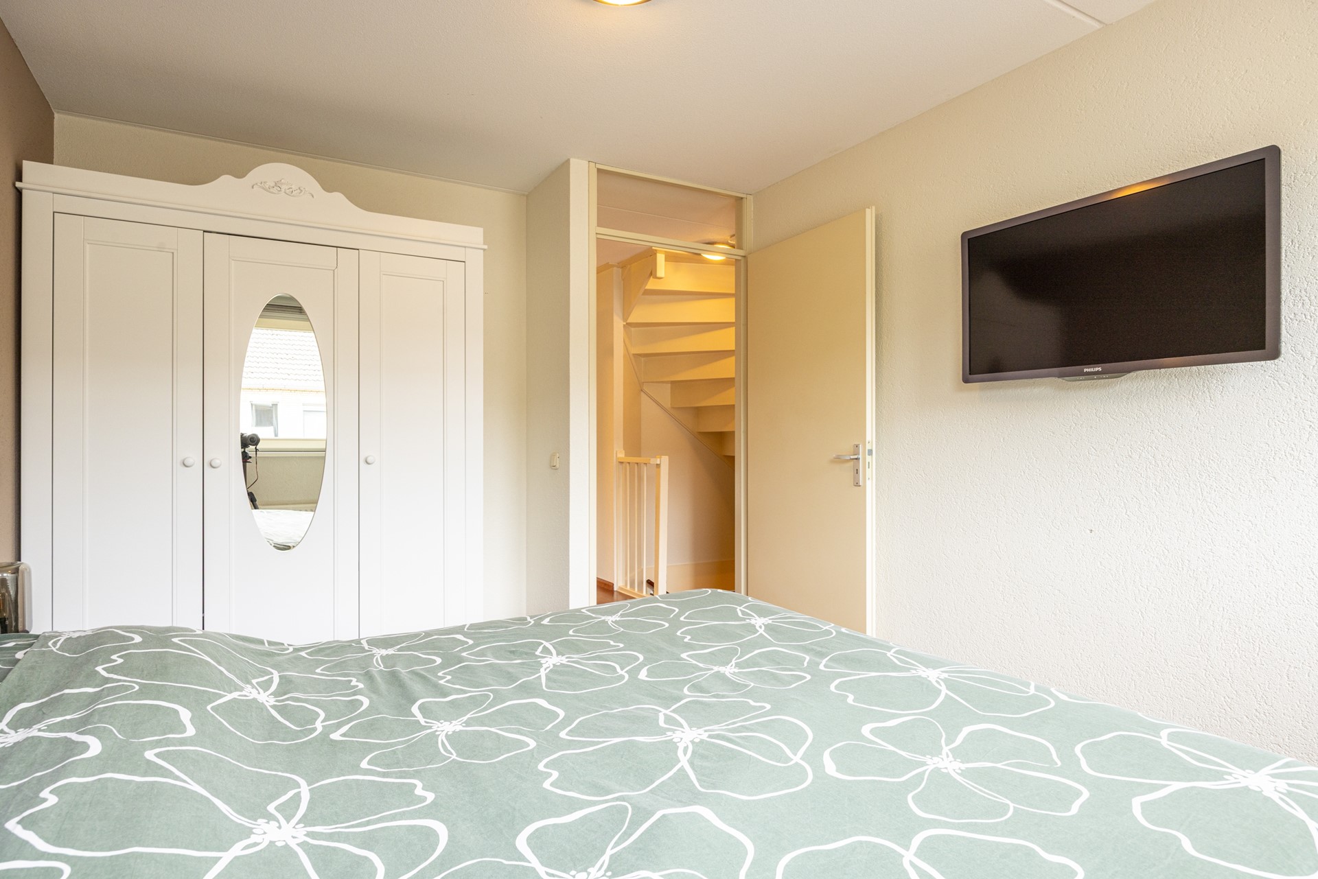 De trap is afgewerkt met tapijt en leidt naar de overloop, voorzien van laminaatvloer en een airco-unit die de gehele verdieping kan koelen of verwarmen. Er zijn drie slaapkamers, voorzien van een laminaatvloer, veel daglicht en rolluiken. De badkamer is compleet en praktisch ingedeeld met een douchecabine met glazen wand en deur, een tweede toilet, een wastafel met spiegel en een raam met rolluik.