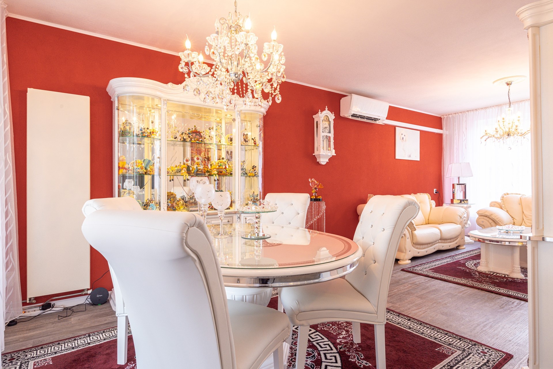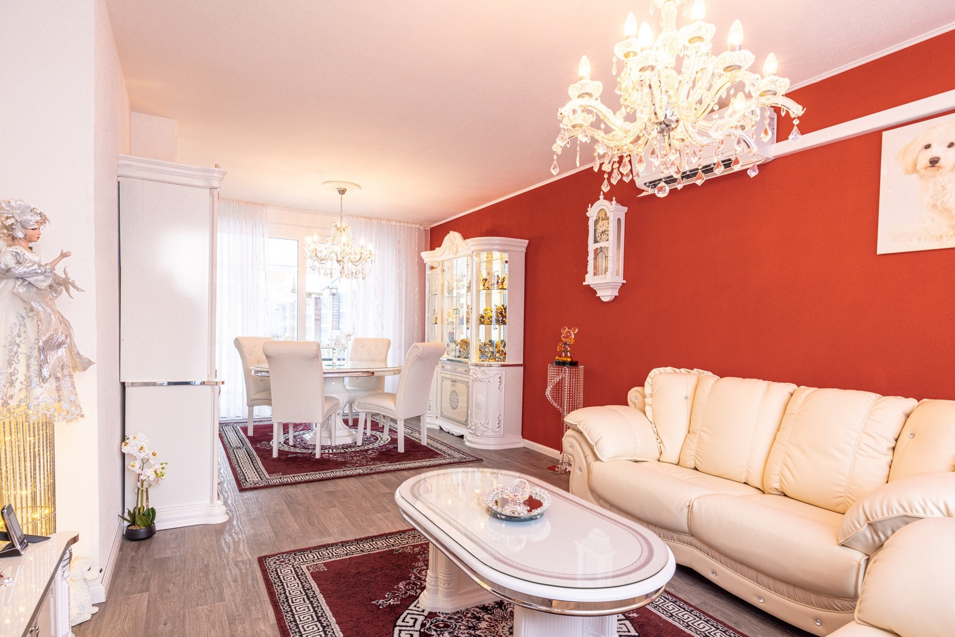 De doorzonwoonkamer is afgewerkt met een linoleumvloer en beschikt over grote ramen aan zowel de voor- als achterzijde, waardoor er prettig daglicht binnenkomt. De ruimte is voorzien van een airco die zowel kan koelen als verwarmen. Daarnaast zijn de ramen uitgerust met elektrische rolluiken. Via de schuifpui is er directe toegang tot het overdekte terras in de achtertuin.